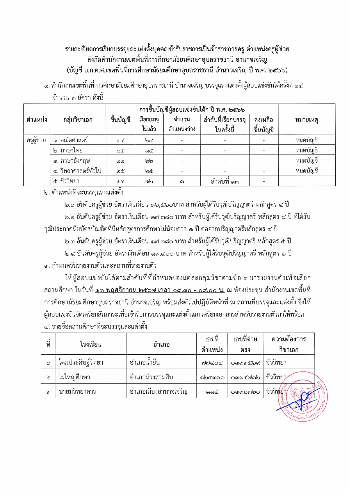 16 ธ.ค. 2568สพม.ยะลา ไฟเขียว! อนุมัติ 6 อัตรา เตรียมสอบครูผู้ช่วย "กรณีพิเศษ" ปี 2569 (พลศึกษา/สังคม/คอม/อังกฤษ ฯลฯ) 15 ธ.ค. 2568สพป.เลย เขต 2 รับสมัครพนักงานราชการครู 10 อัตรา เงินเดือน 21,780 บาท (คณิต/ไทย/คอม/ปฐมวัย ฯลฯ) 15 ธ.ค. 2568กทม. เรียกบรรจุครูผู้ช่วย 31 อัตรา (ตัวจริง 31 / สำรอง 28) รายงานตัวออนไลน์ 25 ธ.ค.นี้ 15 ธ.ค. 2568โรงเรียนอนุบาลสุรินทร์ รับสมัครครูอัตราจ้าง "เอกภาษาอังกฤษ (EP)" เงินเดือน 12,000 บาท สมัคร 10-16 ธ.ค.นี้ 15 ธ.ค. 2568โรงเรียนอนุบาลสุรินทร์ รับสมัครครูอัตราจ้าง "เอกสังคมศึกษา" 2 อัตรา เงินเดือน 11,000 บาท (ไม่เว้นวันหยุดราชการ) 14 ธ.ค. 2568กองทัพบก เปิดรับสมัครบุคคลเข้าปฏิบัติงาน 2,350 อัตรา (นักเรียนนายสิบ/นายทหารประทวน) สมัคร 1 ธ.ค. 68 - 14 ม.ค. 69 14 ธ.ค. 2568สำนักงานศาลปกครอง เปิดสอบบรรจุข้าราชการ "เจ้าพนักงานธุรการ" 25 อัตรา (วุฒิ ปวช.) สมัคร 8-30 ธ.ค.นี้ 14 ธ.ค. 2568กรมที่ดิน เปิดสอบบรรจุข้าราชการ 10 อัตรา (วุฒิ ป.ตรี / ปวส.) เงินเดือนสูงสุด 19,970 บาท 14 ธ.ค. 2568โรงเรียนช้างกลางประชานุกูล รับสมัครครูอัตราจ้าง "วิชาเอกฟิสิกส์" (สมัครออนไลน์) ระหว่างวันที่ 12 - 18 ธันวาคม 2568 14 ธ.ค. 2568โรงเรียนวัดศรีจันดาธรรม จ.เพชรบูรณ์ รับสมัครครูอัตราจ้าง (เอกประถมศึกษา/ภาษาไทย/อื่นๆ) สมัคร 15-19 ธ.ค.นี้