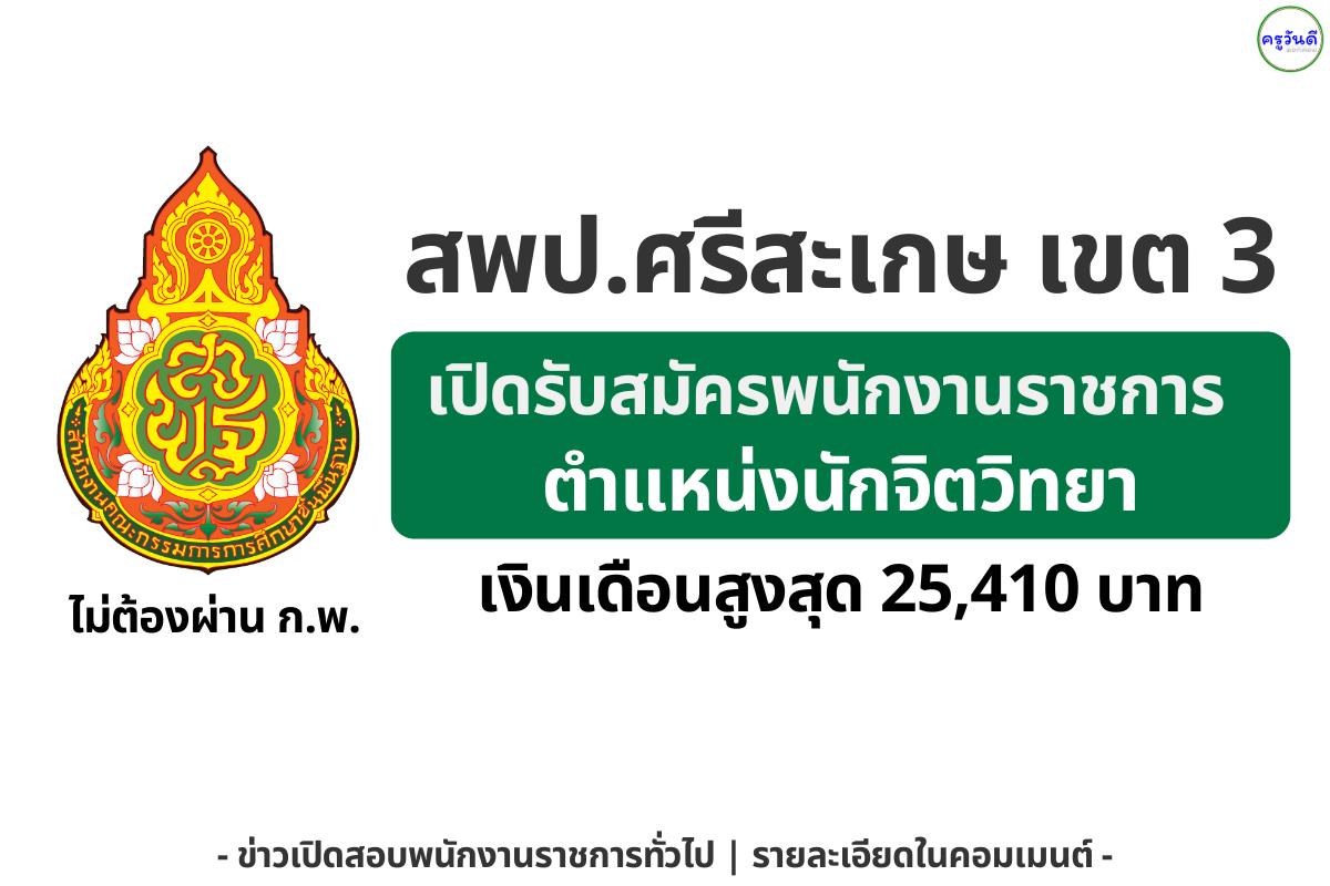 สพป.ศรีสะเกษ เขต 3 เปิดรับสมัครบุคคลเพื่อปฏิบัติหน้าที่นักจิตวิทยาโรงเรียน โดยมีรายละเอียดเกี่ยวกับอัตราค่าตอบแทนและคุณสมบัติเฉพาะตำแหน่ง ดังนี้