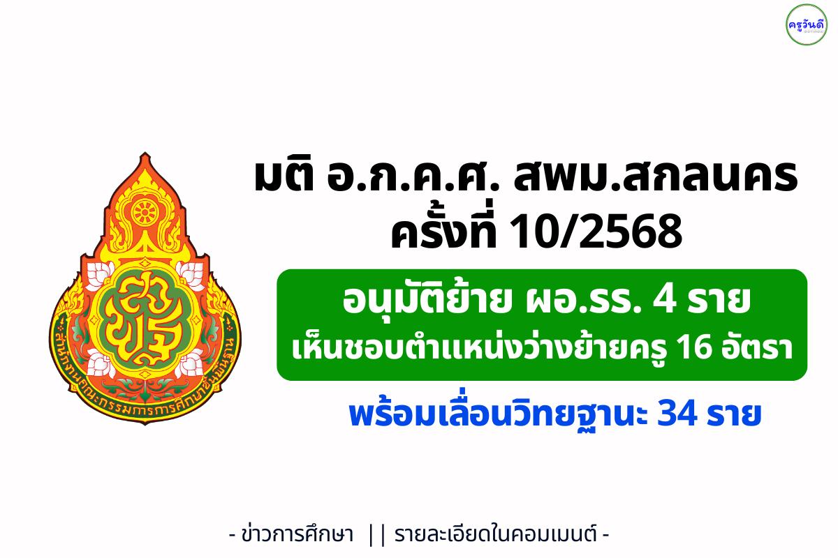 - การย้าย ผอ.รร.: อนุมัติผลการย้ายรวม 4 ราย (รร.คำตากล้าราชประชาสงเคราะห์, รร.คำเพิ่มพิทยา, รร.เฉลิมพระเกียรติฯ สกลนคร และ รร.ช้างมิ่งพิทยานุกูล)