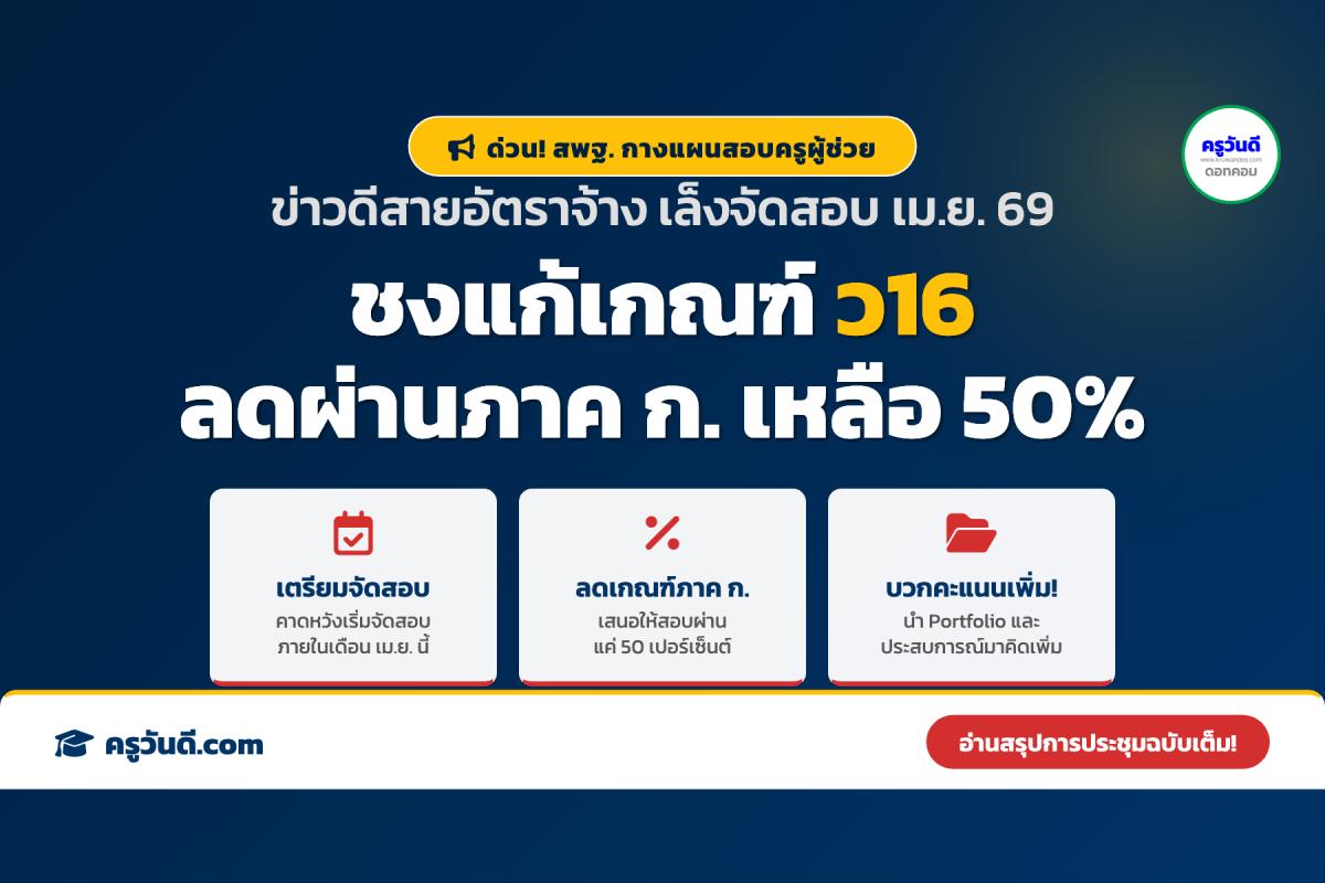 ✅ เสนอปรับเกณฑ์ ว16 เพิ่มโอกาสให้ครูอัตราจ้าง