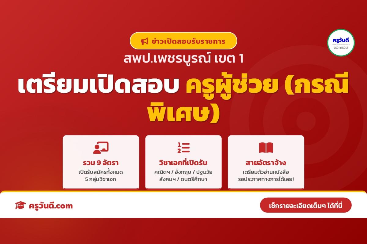 ด่วน! สพป.เพชรบูรณ์ เขต 1 เตรียมเปิดสอบ "ครูผู้ช่วย กรณีพิเศษ" 9 อัตรา ใครรออยู่เตรียมตัวเลย!