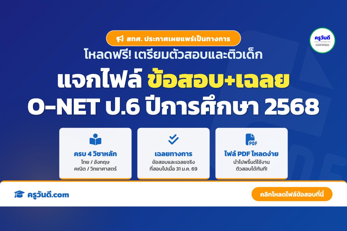 สทศ. เผยแพร่ข้อสอบและเฉลยคำตอบ O-NET ป.6 ปีการศึกษา 2568 (ดาวน์โหลดฟรี)