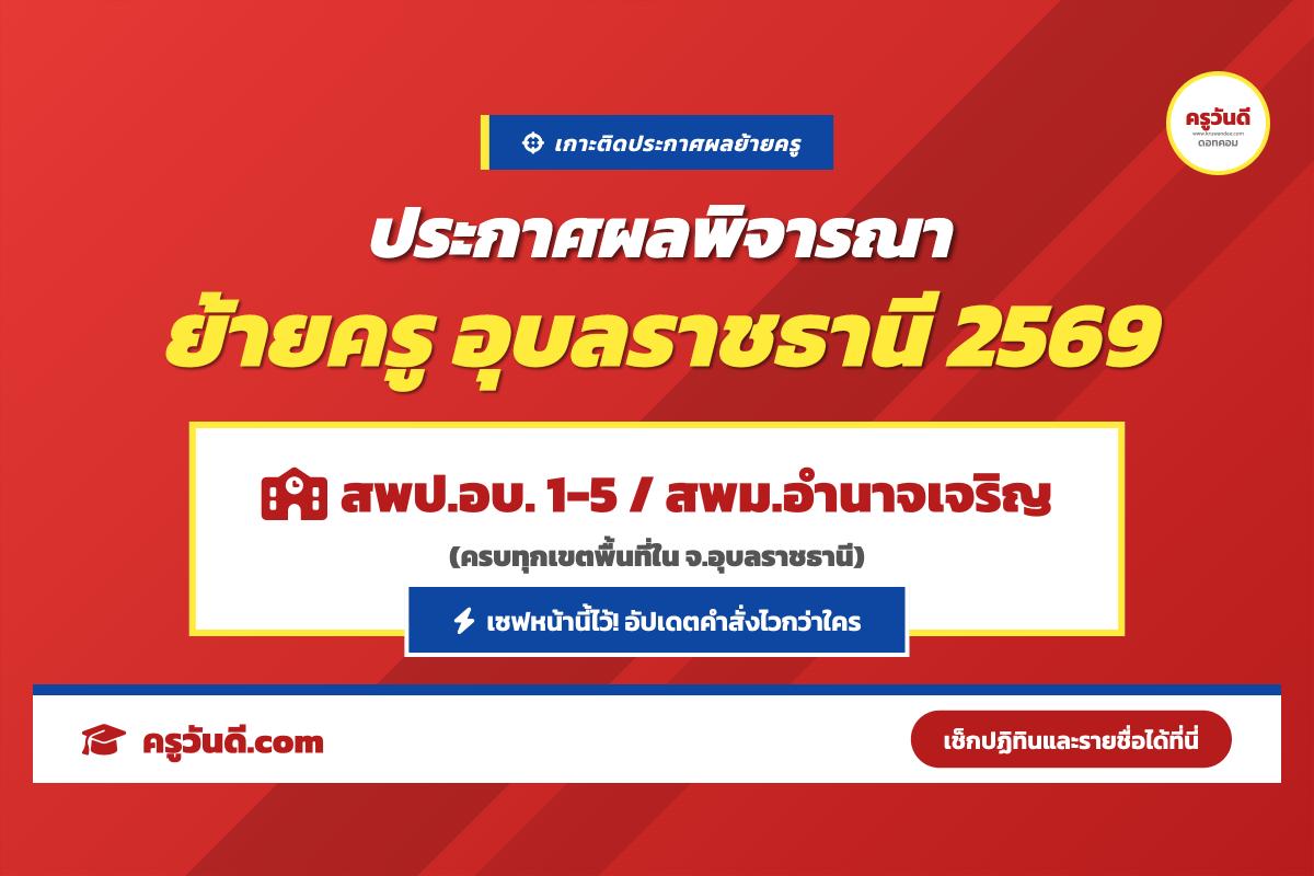 เกาะติด ประกาศผลพิจารณาย้ายครู 2569 จังหวัดอุบลราชธานี (สพป.อบ. 1-5 / สพม.อุบลราชธานี อำนาจเจริญ)
