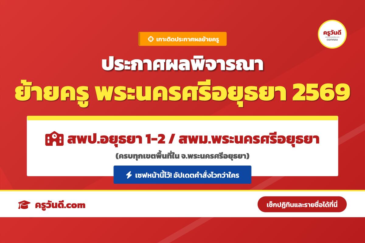 เกาะติด ประกาศผลพิจารณาย้ายครู 2569 จังหวัดพระนครศรีอยุธยา (สพป.อยุธยา 1-2 / สพม.พระนครศรีอยุธยา)
