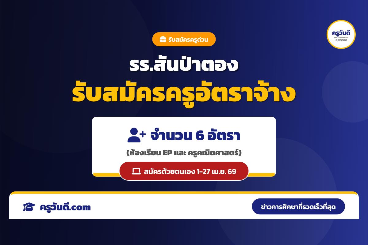 เงินเดือน 10,000.- รร.สันป่าตอง (สุวรรณราษฎร์วิทยาคาร) รับสมัครครูอัตราจ้าง 6 อัตรา (สมัครด้วยตนเอง)