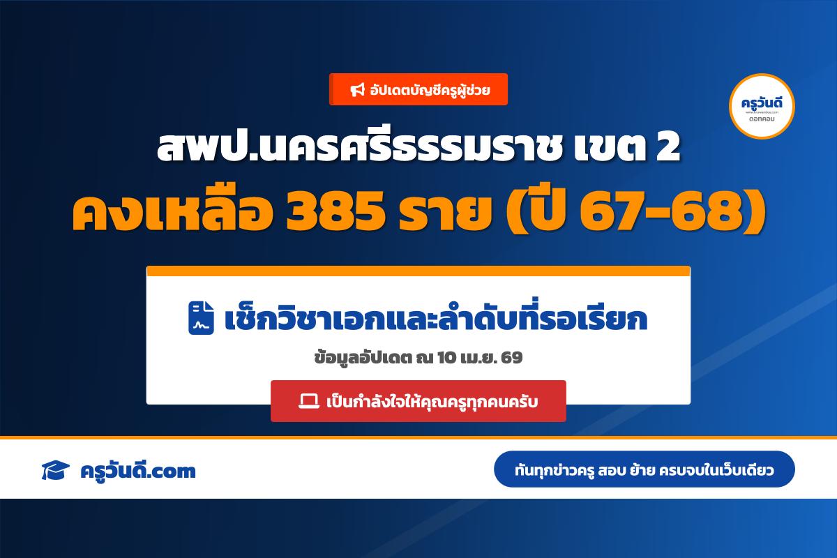 อัปเดตบัญชีสอบแข่งขันครูผู้ช่วย สพป.นครศรีธรรมราช เขต 2 (ปี 2567-2568) ณ 10 เม.ย. 69