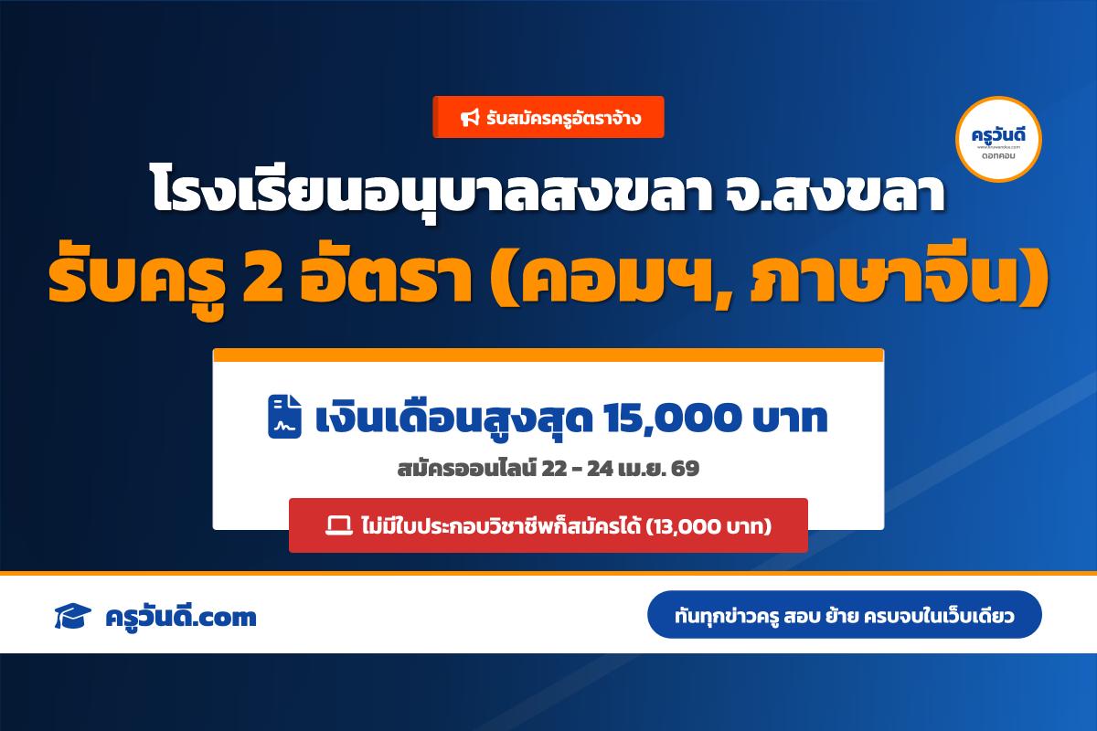 โรงเรียนอนุบาลสงขลา รับสมัครครูอัตราจ้าง 2 อัตรา เงินเดือน 15,000 บาท (สมัครออนไลน์ 22-24 เม.ย. 69)