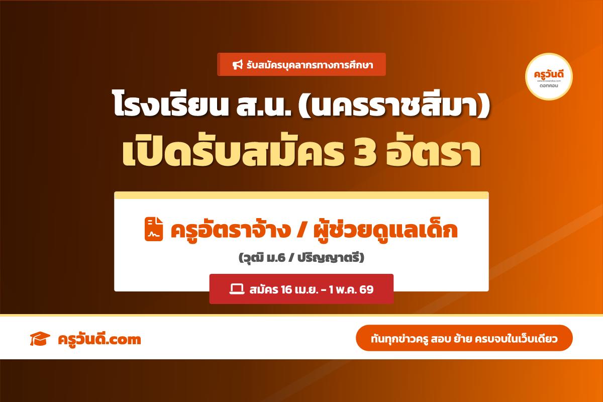 วุฒิ ม.6 - ป.ตรี ห้ามพลาด! โรงเรียนสุขานารี จ.นครราชสีมา เปิดรับสมัครบุคลากร 3 อัตรา (สมัคร 16 เม.ย.-1 พ.ค. 69)