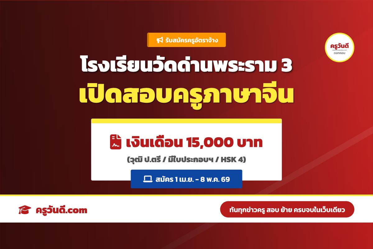 วุฒิ ป.ตรี ห้ามพลาด! รร.วัดด่านพระราม 3 เปิดสอบครูภาษาจีน เงินเดือน 15,000 บ. (สมัคร 1 เม.ย. - 8 พ.ค. 69)