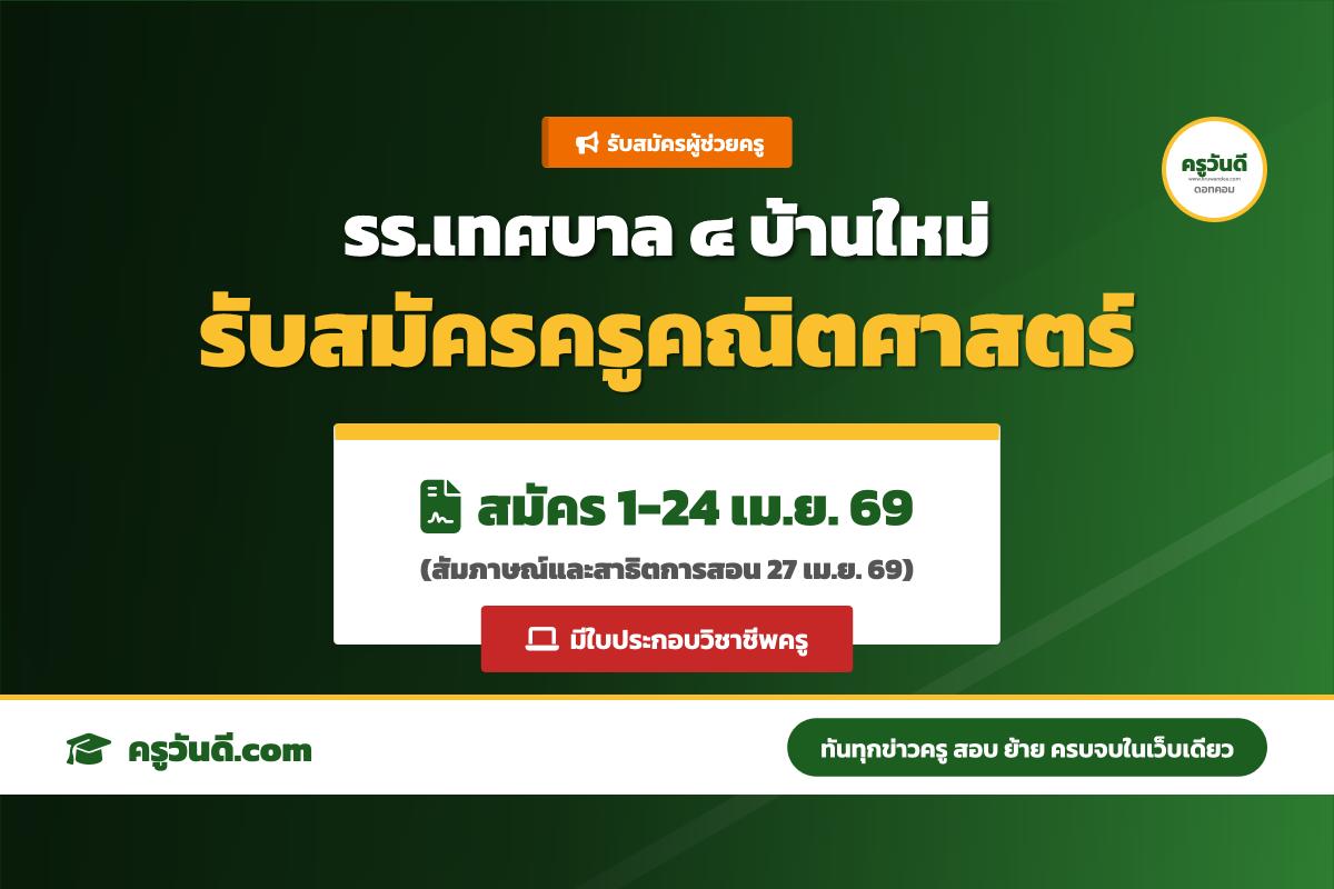 โรงเรียนเทศบาล ๔ บ้านใหม่ รับสมัครผู้ช่วยครูวิชาคณิตศาสตร์ 1 อัตรา (รับสมัคร 1-24 เม.ย. 69)