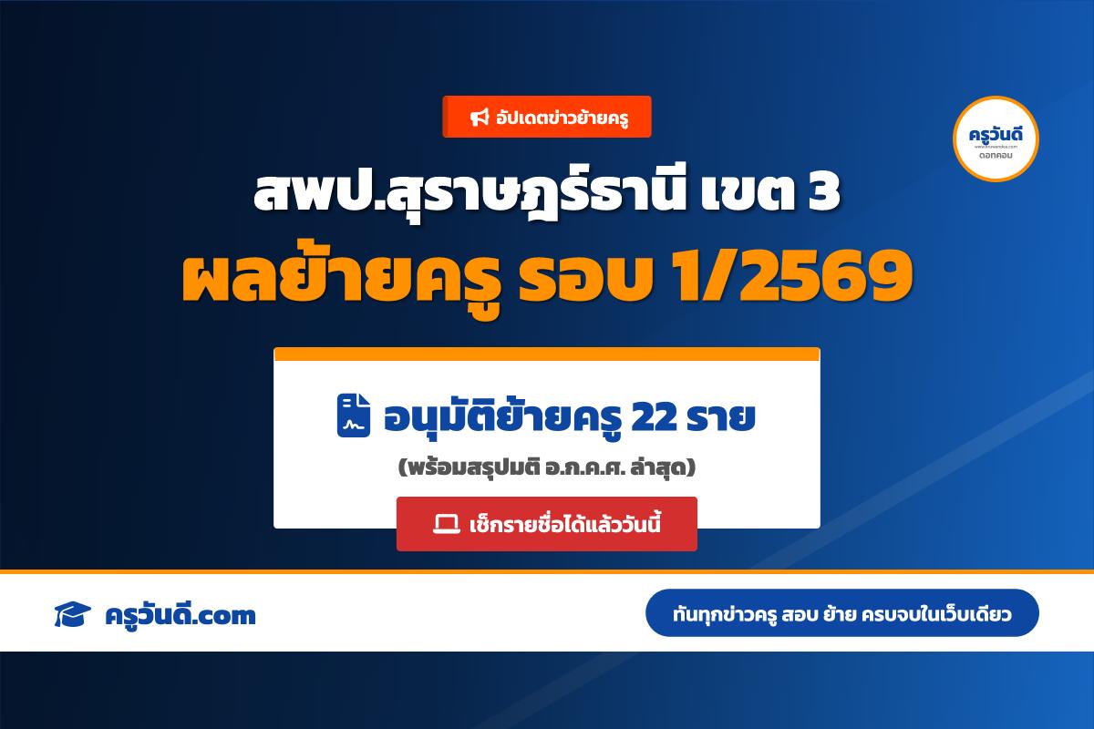 คลอดแล้ว! สพป.สุราษฎร์ธานี เขต 3 ประกาศผลย้ายครู รอบ 1/2569 (อนุมัติ 22 ราย) พร้อมมติ อ.ก.ค.ศ. ล่าสุด