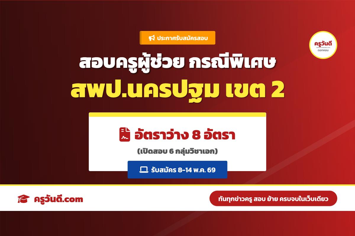 สพป.นครปฐม เขต 2 ประกาศอัตราว่างสอบครูผู้ช่วย กรณีพิเศษ ปี พ.ศ. 2569 (รับสมัคร 8-14 พ.ค. 69)