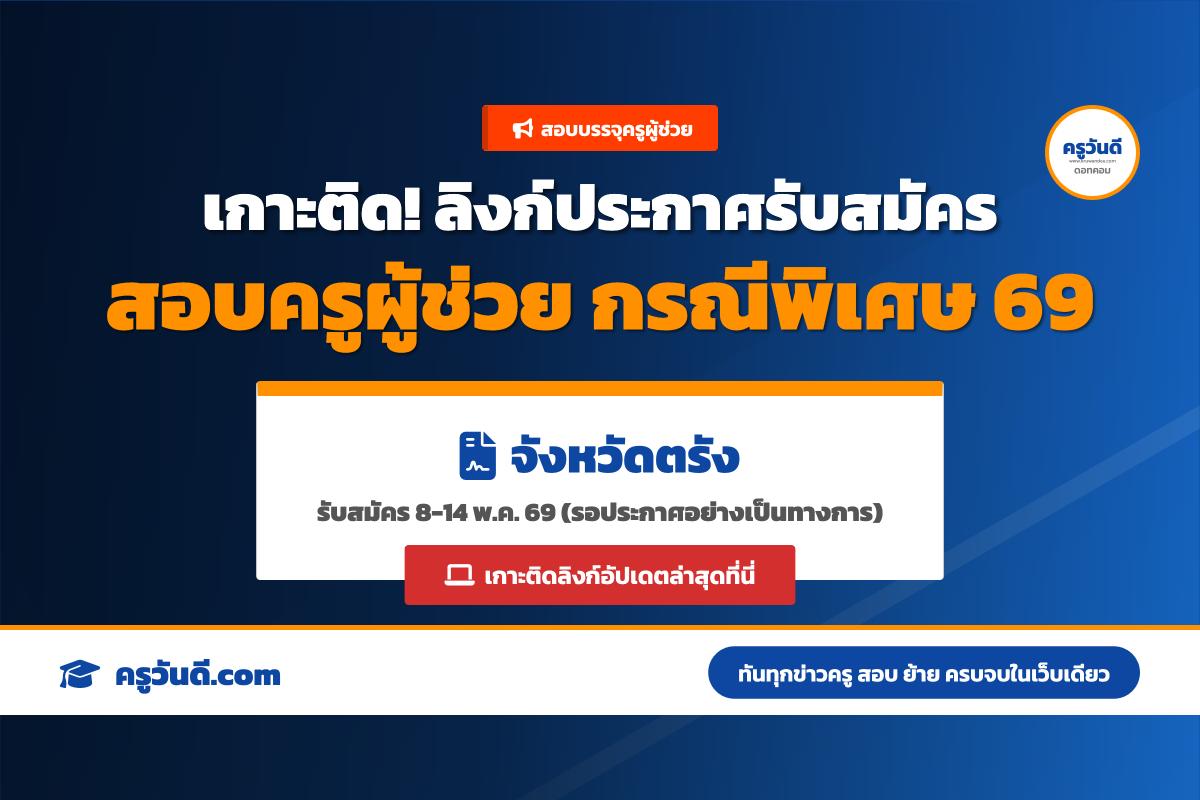 เกาะติด! ลิงก์ประกาศรับสมัครสอบครูผู้ช่วย กรณีพิเศษ จังหวัดตรัง ปี 2569 (รับสมัคร 8-14 พ.ค. 69)