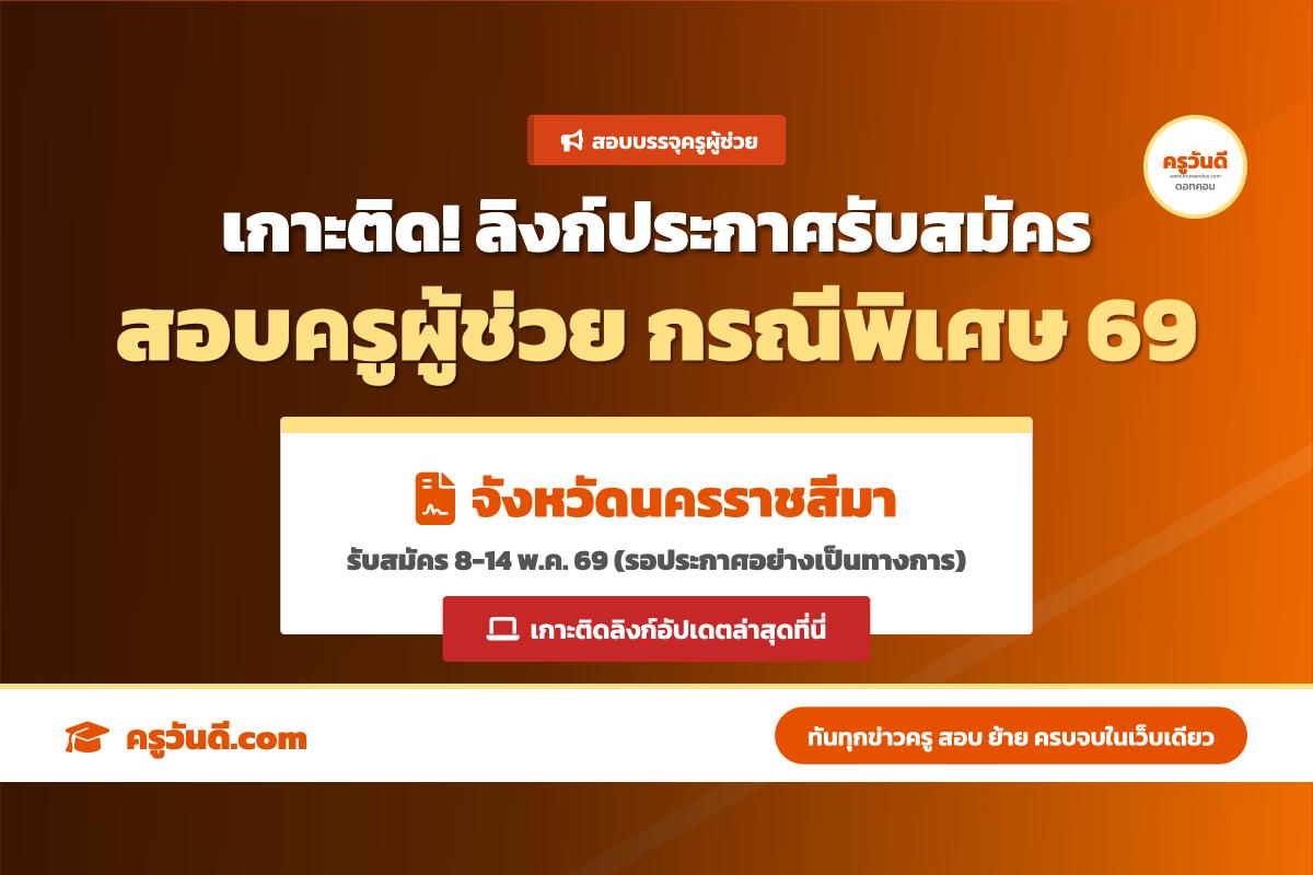 เกาะติด! ลิงก์ประกาศรับสมัครสอบครูผู้ช่วย กรณีพิเศษ จังหวัดนครราชสีมา ปี 2569 (รับสมัคร 8-14 พ.ค. 69)