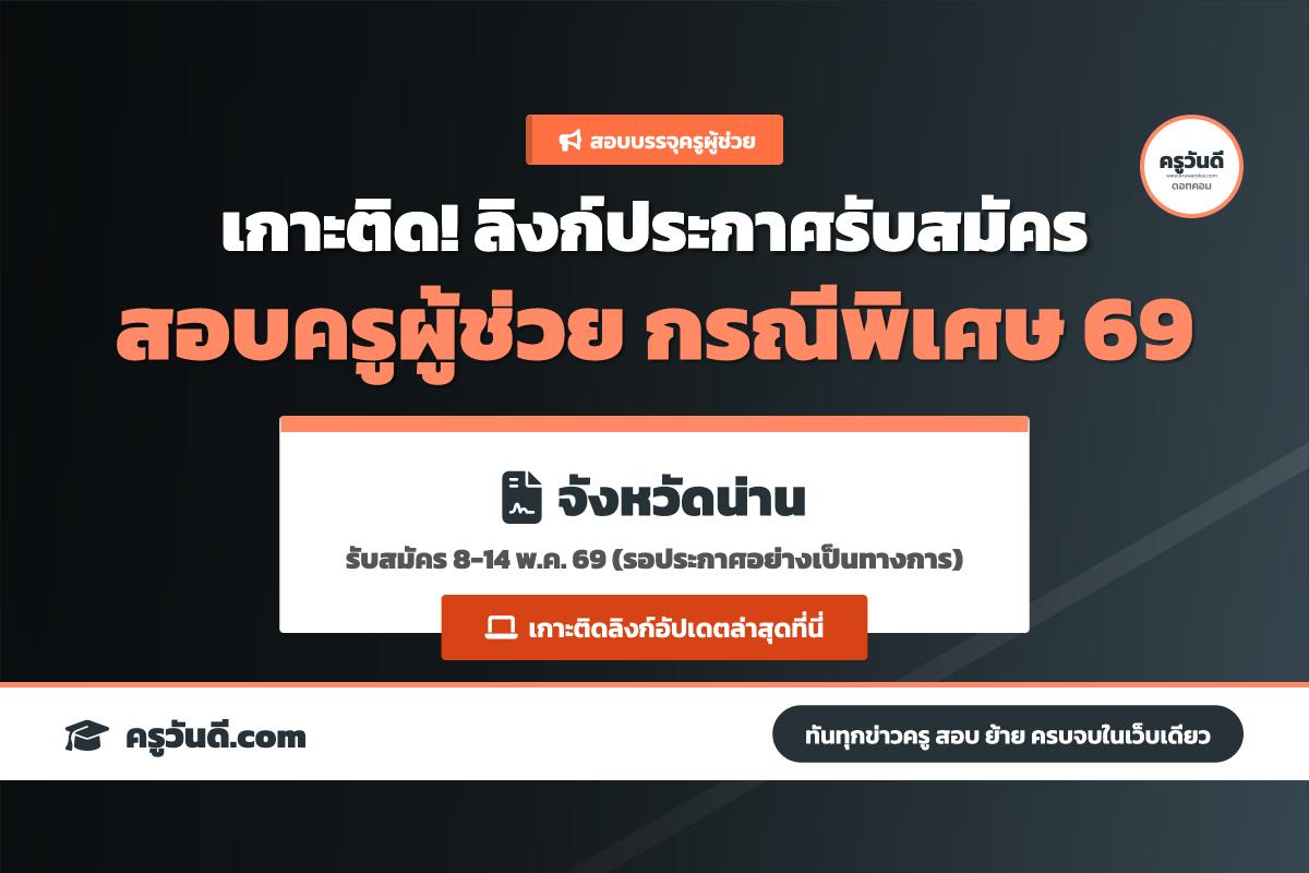 เกาะติด! ลิงก์ประกาศรับสมัครสอบครูผู้ช่วย กรณีพิเศษ จังหวัดน่าน ปี 2569 (รับสมัคร 8-14 พ.ค. 69)