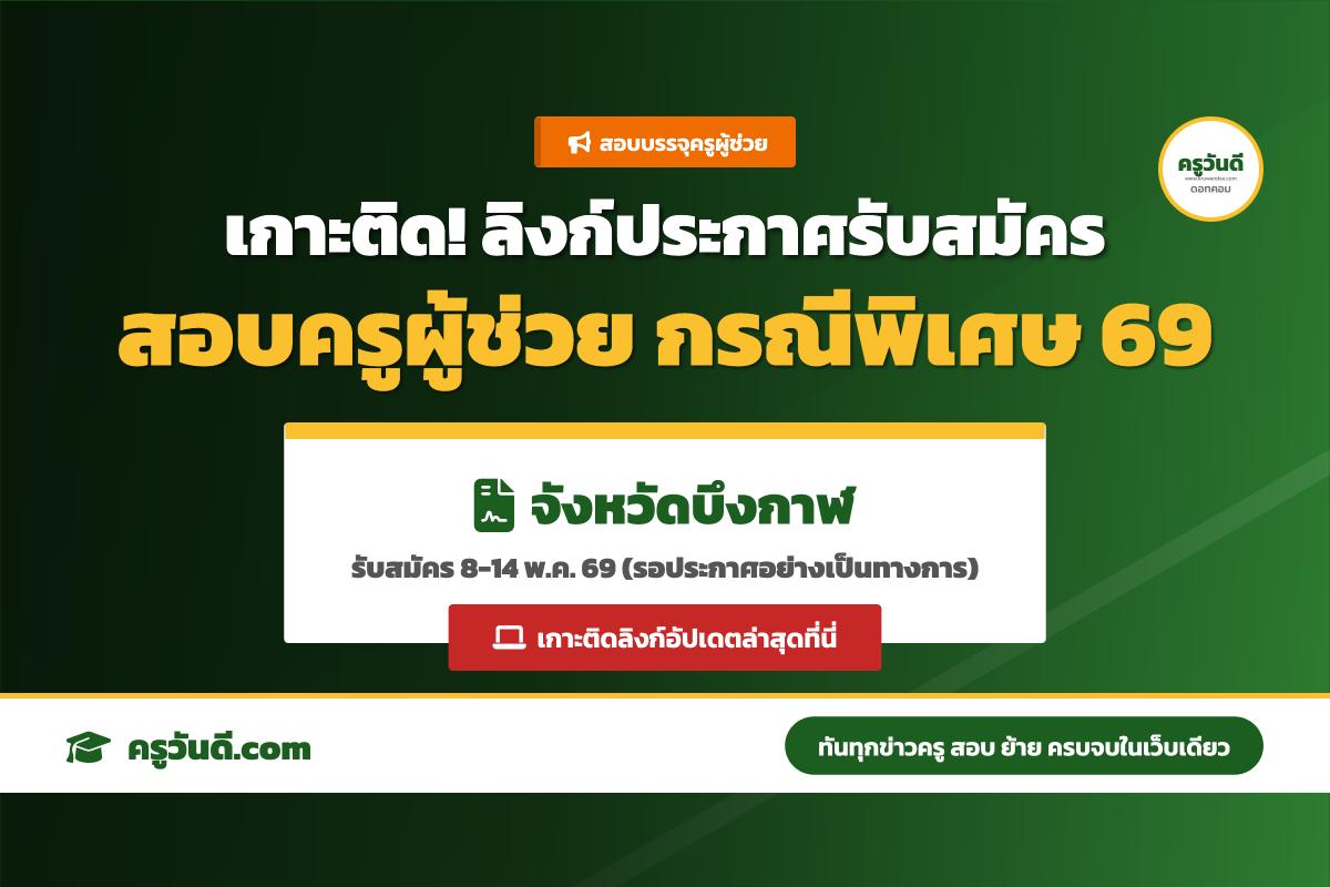 เกาะติด! ลิงก์ประกาศรับสมัครสอบครูผู้ช่วย กรณีพิเศษ จังหวัดบึงกาฬ ปี 2569 (รับสมัคร 8-14 พ.ค. 69)