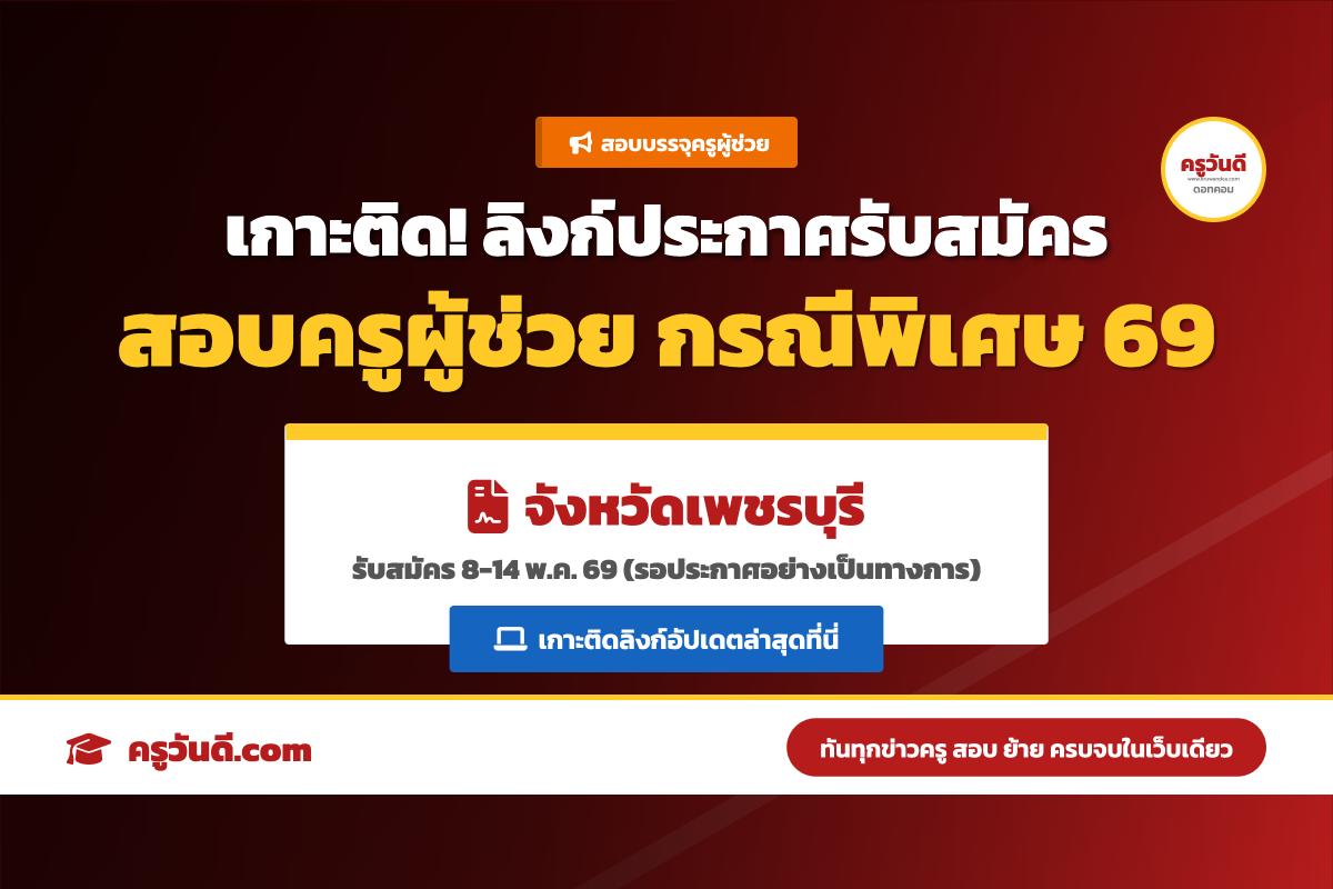 เกาะติด! ลิงก์ประกาศรับสมัครสอบครูผู้ช่วย กรณีพิเศษ จังหวัดเพชรบุรี ปี 2569 (รับสมัคร 8-14 พ.ค. 69)