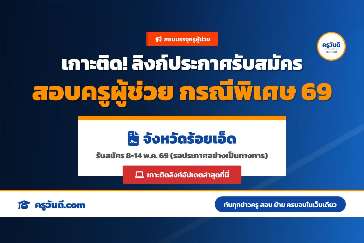 เกาะติด! ลิงก์ประกาศรับสมัครสอบครูผู้ช่วย กรณีพิเศษ จังหวัดร้อยเอ็ด ปี 2569 (รับสมัคร 8-14 พ.ค. 69)