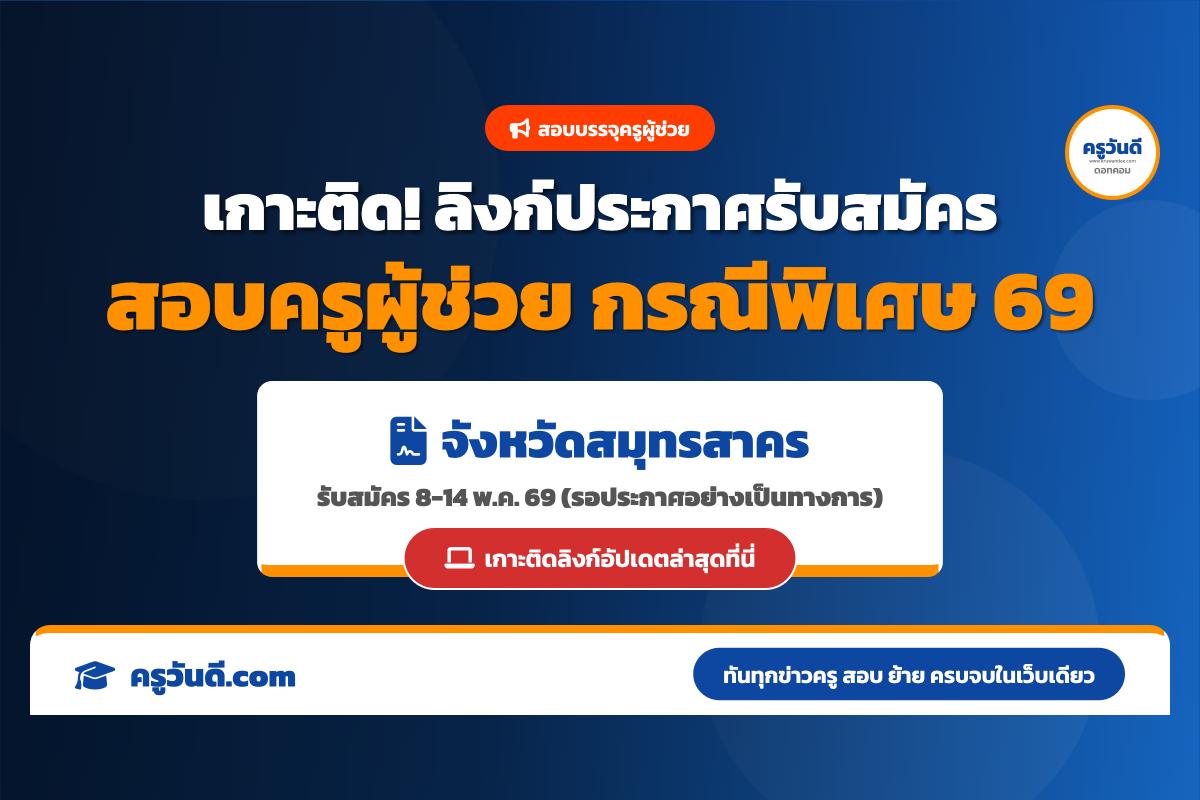 เกาะติด! ลิงก์ประกาศรับสมัครสอบครูผู้ช่วย กรณีพิเศษ จังหวัดสมุทรสาคร ปี 2569 (รับสมัคร 8-14 พ.ค. 69)