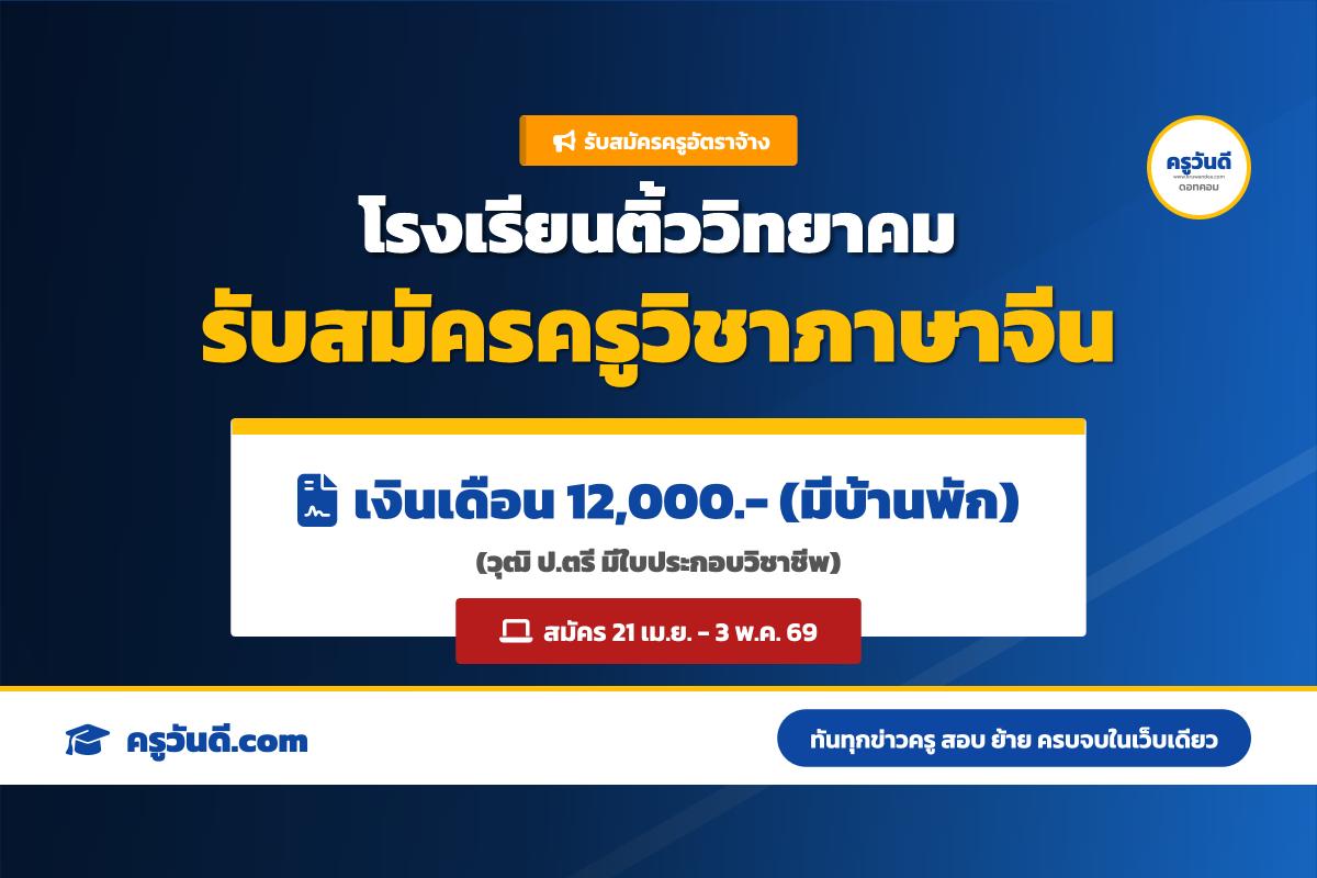 ข่าวดีคนหางานครู! โรงเรียนติ้ววิทยาคม เปิดรับสมัครครูอัตราจ้าง วิชาภาษาจีน (มีบ้านพักให้)