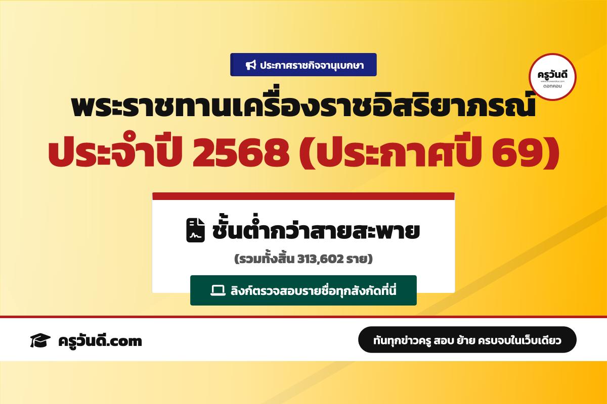 สรุปข่าวและข้อแนะนำจากแอดมิน: แอดมินครูวันดีขอแสดงความยินดีกับข้าราชการครู บุคลากรทางการศึกษา และข้าราชการทุกสังกัดที่ได้รับพระราชทานเครื่องราชอิสริยาภรณ์อันเป็นเกียรติยศในครั้งนี้ด้วยนะครับ ถือเป็นขวัญและกำลังใจในการปฏิบัติหน้าที่รับใช้ชาติสืบไป ทั้งนี้ สำหรับข้าราชการท่านใดที่ต้องการปรับโครงสร้างหนี้ หรือมองหาแหล่งเงินทุนเพื่อลดภาระดอกเบี้ยบ้านให้มีสภาพคล่องทางการเงินที่ดีขึ้น ครูวันดีขอแนะนำ รวม โปรโมชัน รีไฟแนนซ์บ้าน 2569 ข้าราชการครู สพฐ. (ดอกเบี้ยต่ำสุด 0.99%) เพื่อเป็นแนวทางในการวางแผนการเงินของครอบครัวให้มั่งคั่งและมั่นคงครับ