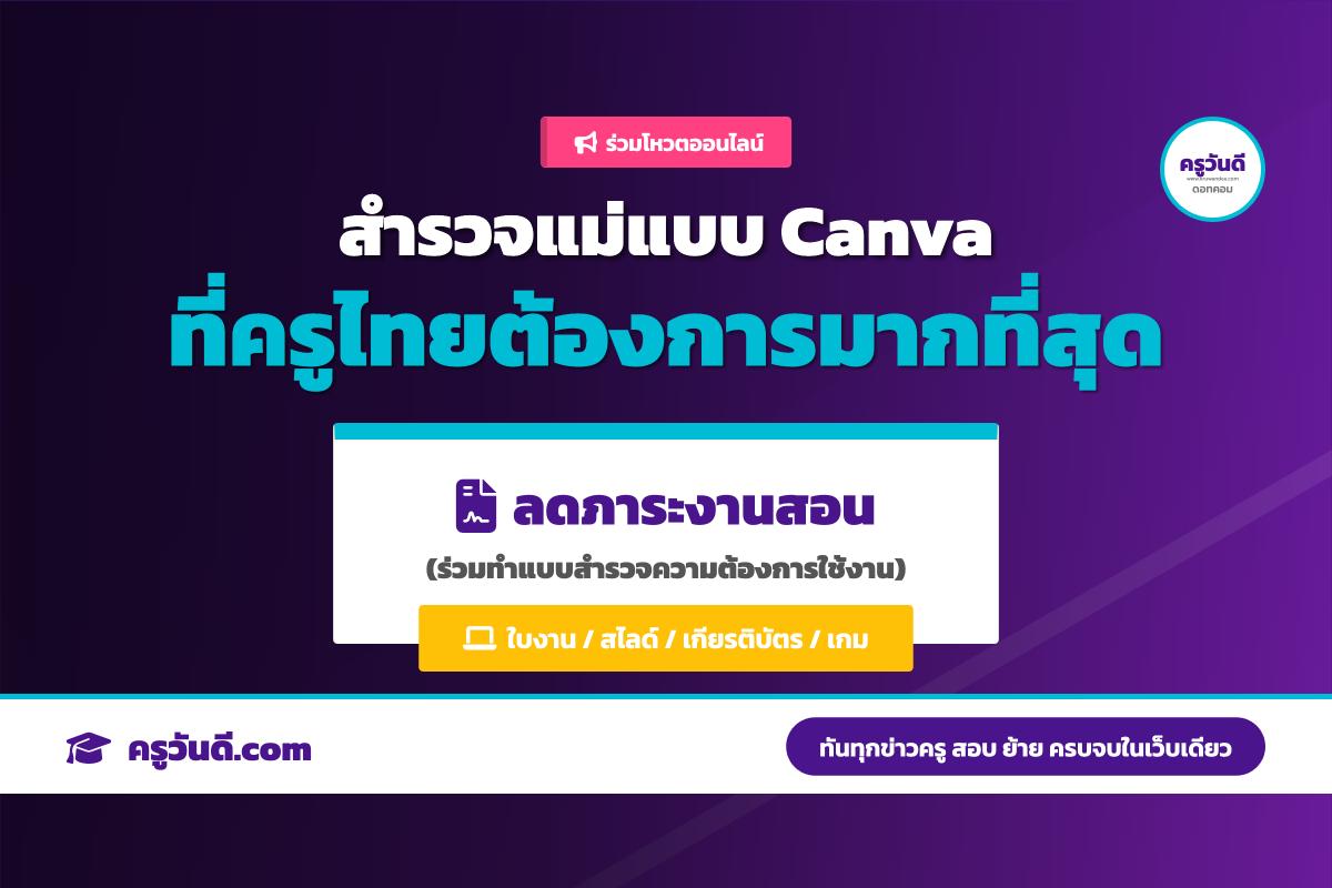 ครูไทยห้ามพลาด! ร่วมทำแบบสำรวจแม่แบบ Canva ที่ต้องการมากที่สุด เพื่อนำไปช่วยลดภาระงานสอน