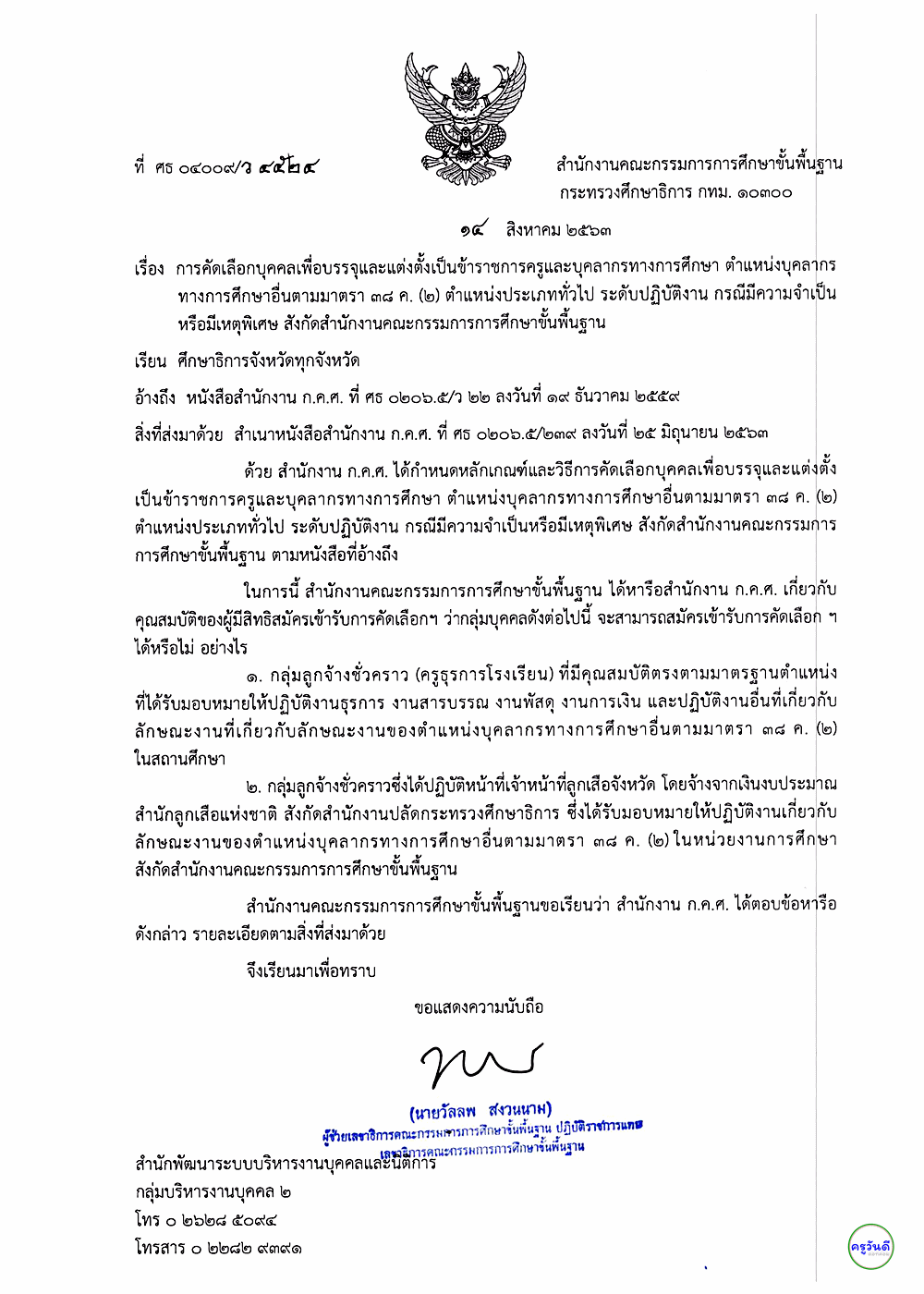21 มี.ค. 2569รวมลิงก์ประกาศผลการพิจารณาย้ายข้าราชการครูฯ (กรณีปกติ) ปี 2569 รอบที่ 1 ครบทุกเขตพื้นที่ทั่วประเทศ 21 มี.ค. 2569เกาะติด! ประกาศผลพิจารณาย้ายครู 2569 จังหวัดระยอง (สพป.ระยอง 1-2) 21 มี.ค. 2569เกาะติด! ประกาศผลพิจารณาย้ายครู 2569 จังหวัดระนอง (สพป.ระนอง) 21 มี.ค. 2569เกาะติด! ประกาศผลพิจารณาย้ายครู 2569 จังหวัดร้อยเอ็ด (สพป.ร้อยเอ็ด 1-3 / สพม.ร้อยเอ็ด) 21 มี.ค. 2569เกาะติด! ประกาศผลพิจารณาย้ายครู 2569 จังหวัดยโสธร (สพป.ยโสธร 1-2) 21 มี.ค. 2569เกาะติด! ประกาศผลพิจารณาย้ายครู 2569 จังหวัดแม่ฮ่องสอน (สพป.มส. 1-2 / สพม.แม่ฮ่องสอน) 21 มี.ค. 2569เกาะติด! ประกาศผลพิจารณาย้ายครู 2569 จังหวัดมุกดาหาร (สพป.มุกดาหาร / สพม.มุกดาหาร) 21 มี.ค. 2569เงินเดือน 21,780 บาท สมัครออนไลน์ สกร.ลำปาง เปิดสอบพนักงานราชการ 4 อัตรา รับวุฒิ ป.ตรี ทุกสาขาที่มีใบประกอบฯ 21 มี.ค. 2569รับมือวิกฤต สปป.ลาว สั่งด่วนลดวันเรียนเหลือ 3 วันต่อสัปดาห์ ช่วยผู้ปกครองประหยัดน้ำมัน 21 มี.ค. 2569กทม. นำร่อง 437 โรงเรียนในสังกัด ห้ามใช้โทรศัพท์มือถือในเวลาเรียน