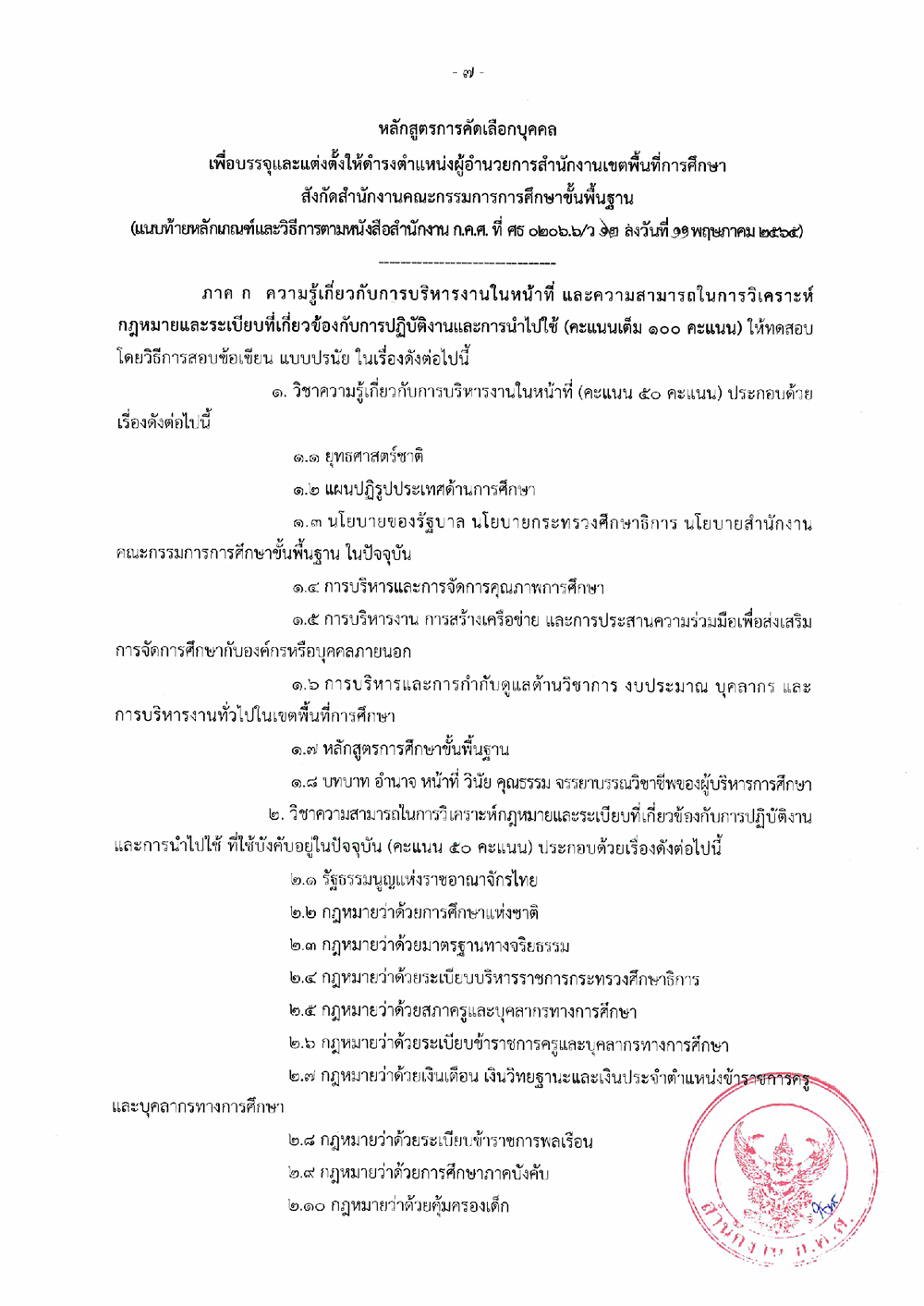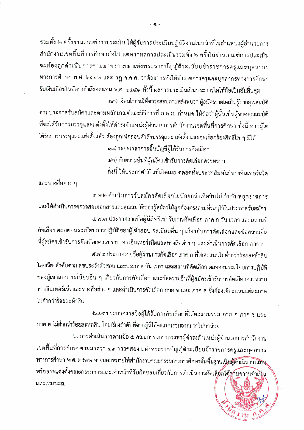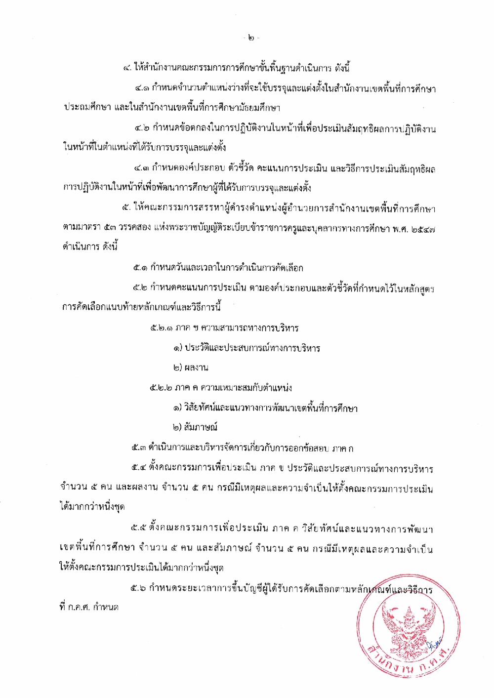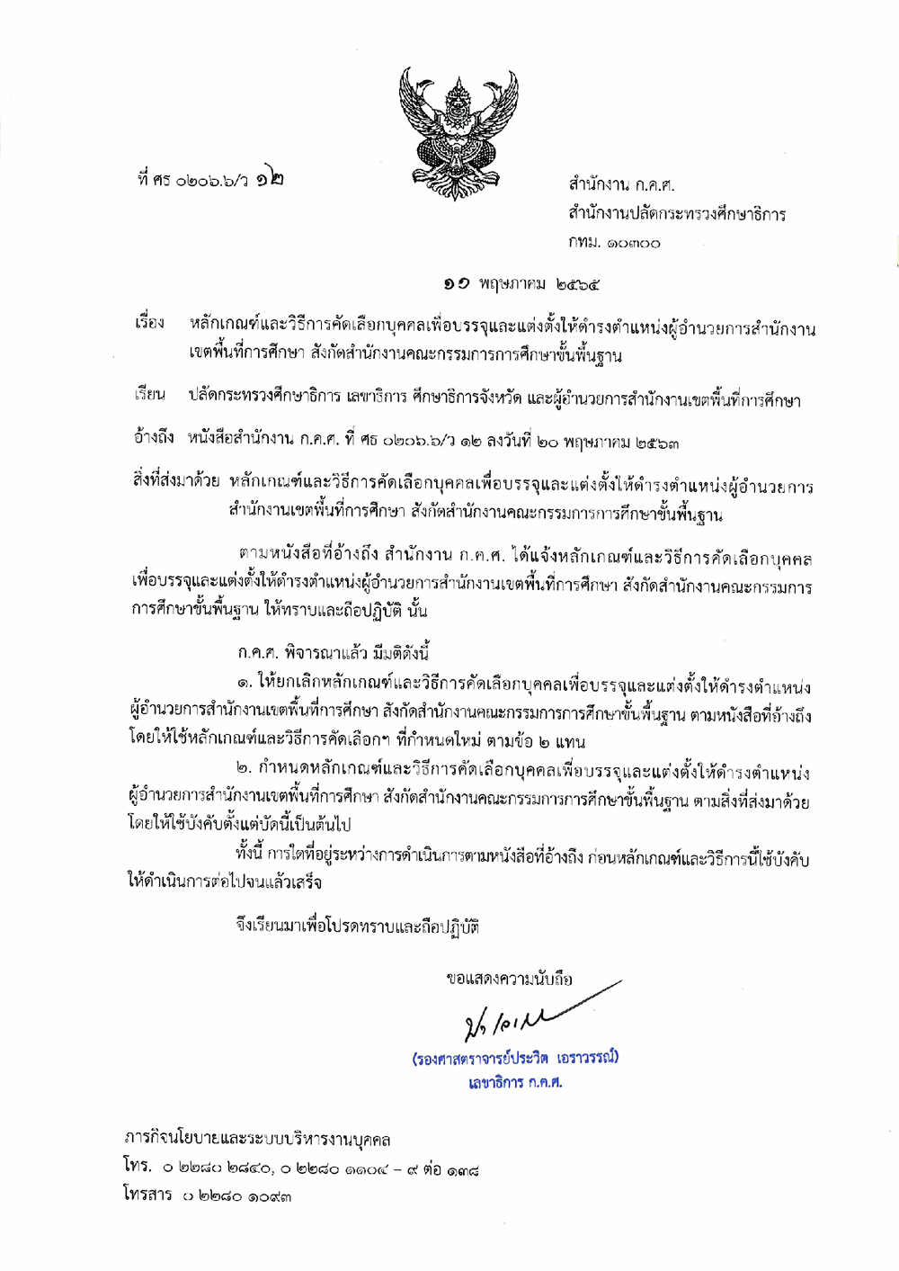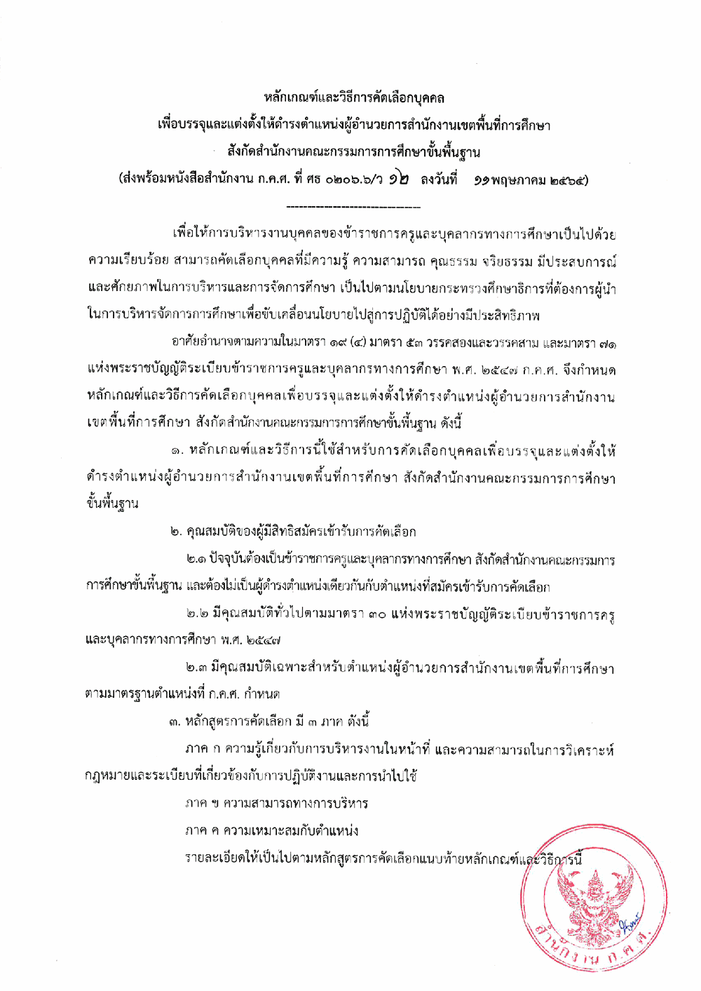 ว12/2565 - หลักเกณฑ์และวิธีการคัดเลือกบุคคลเพื่อบรรจุและแต่งตั้งให้ดำรงตำแหน่งผู้อำนวยการสำนักงานเขตพื้นที่การศึกษา สังกัดสำนักงานคณะกรรมการการศึกษาขั้นพื้นฐาน