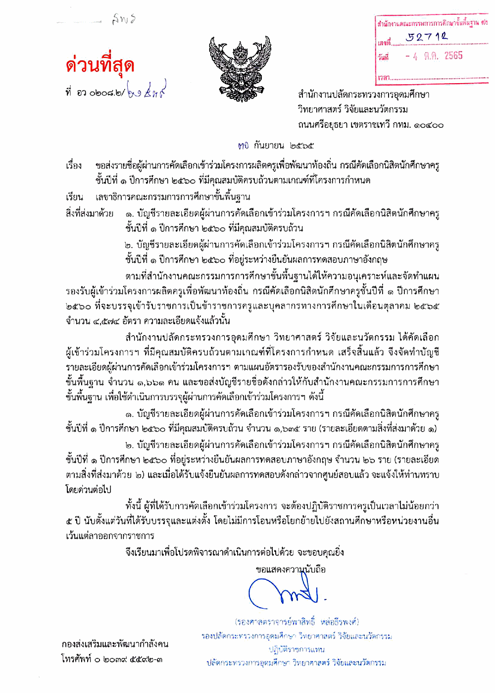 10 ธ.ค. 2568รวมประกาศตำแหน่งว่าง การย้ายข้าราชการครูและบุคลากรทางการศึกษา ตำแหน่งครู (กรณีปกติ) รอบที่ 1 ประจำปี พ.ศ. 2569 สังกัดสำนักงานคณะกรรมการการศึกษาขั้นพื้นฐาน (สพฐ.) 10 ธ.ค. 2568สพม.ยะลา ไฟเขียว! อนุมัติ 6 อัตรา เตรียมสอบครูผู้ช่วย "กรณีพิเศษ" ปี 2569 (พลศึกษา/สังคม/คอม/อังกฤษ ฯลฯ) 10 ธ.ค. 2568ด่วนที่สุด! ก.ค.ศ. สั่งเบรกย้ายครูผ่านระบบ TRS ชั่วคราว (เริ่ม 1 ม.ค. 69) ให้กลับไปใช้เกณฑ์ ว18 พร้อมสั่งเขตฯ ส่งปฏิทินย้ายด่วน ภายใน 19 ธ.ค.นี้! 10 ธ.ค. 2568ประกาศโรงเรียนเทศบาลตำบลลานข่อย (ห้วยศรีเกษร) เรื่อง รับสมัครครูอัตราจ้าง (วิชาเอกปฐมวัย) จำนวน 1 อัตรา เปิดรับสมัครตั้งแต่วันที่ 9 ธันวาคม 2568 เป็นต้นไป 10 ธ.ค. 2568สกร.จังหวัดสงขลา รับสมัครพนักงานราชการ "ครูอาสาสมัครฯ" 5 อัตรา เงินเดือน 21,780 บาท ระหว่างวันที่ 17 - 23 ธันวาคม 2568 (ในวันเวลาราชการ) 10 ธ.ค. 2568โรงเรียนอนุบาลนครนายก รับสมัครครูอัตราจ้าง วิชาเอกคณิตศาสตร์ 1 อัตรา 10 ธ.ค. 2568โรงเรียนบ้านโนนฤๅษี (สพป.หนองคาย เขต 2) รับสมัครธุรการโรงเรียน วุฒิ ป.ตรี ทุกสาขา เงินเดือน 15,000 บาท 10 ธ.ค. 2568สพป.พังงา รับสมัครพนักงานราชการ "ครูผู้สอน" 8 อัตรา เงินเดือน 21,780 บาท สมัคร 15-19 ธ.ค.นี้ 10 ธ.ค. 2568ครม. ไฟเขียว "ร่าง พ.ร.บ.การศึกษาแห่งชาติ" เดินหน้าปฏิรูปการศึกษา พร้อมตั้ง 5 ผู้ตรวจราชการ ศธ. ใหม่ 10 ธ.ค. 2568สพฐ. แจงกรณีนมโรงเรียน ยืนยันสถานศึกษาไม่เกี่ยวข้องขั้นตอนการจ่ายเงิน-จัดซื้อ พร้อมกำชับเขตพื้นที่ฯ ตรวจสอบคุณภาพนมเข้มงวด