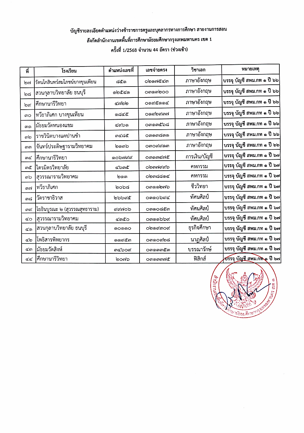 06 ธ.ค. 2568สพป.นครราชสีมา เขต 4 รับสมัครพนักงานราชการครู 10 อัตรา เงินเดือน 21,780 บาท 05 ธ.ค. 2568โรงเรียนวัดพระมหาธาตุ รับสมัครครูอัตราจ้าง วิชาเอกภาษาอังกฤษ เงินเดือน 10,000 บาท 05 ธ.ค. 2568กองทุนเงินให้กู้ยืมเพื่อการศึกษา (กยศ.) รับสมัครเจ้าหน้าที่บริหารงานทั่วไป เงินเดือน 18,750 บาท วุฒิ ป.ตรี ทุกสาขา สมัครทางอีเมลได้ ถึง 17 ธ.ค. 68 04 ธ.ค. 2568วิทยาลัยการอาชีพแก้งคร้อ รับสมัครลูกจ้างชั่วคราว 3 อัตรา (งานบริหาร/ประชาสัมพันธ์/ขับรถ) 04 ธ.ค. 2568สสวท. เปิดรับสมัครพนักงาน 8 อัตรา วุฒิ ป.ตรี-เอก เงินเดือนสูงสุด 37,000 บาท 03 ธ.ค. 2568รวมประกาศรับสมัครพนักงานราชการ (ครู/สายสนับสนุน) สังกัดอาชีวศึกษา หลายจังหวัดทั่วประเทศ 03 ธ.ค. 2568โรงเรียนกันตังพิทยากร รับสมัครครูอัตราจ้าง วิชาเอกภาษาอังกฤษ เงินเดือน 11,920 บาท 03 ธ.ค. 2568โรงเรียนบ้านจอมบึง (วาปีพร้อมประชาศึกษา) รับสมัครครูอัตราจ้าง วิชาเอกคอมพิวเตอร์ 03 ธ.ค. 2568สำนักงานส่งเสริมการเรียนรู้ประจำจังหวัดกาฬสินธุ์ รับสมัครพนักงานราชการทั่วไป 5 อัตรา ตั้งแต่วันที่ 5–12 ธันวาคม 2568 03 ธ.ค. 2568องค์การบริหารส่วนจังหวัดพิจิตร รับสมัครคัดเลือกเพื่อบรรจุเป็นข้าราชการ 4 ตำแหน่ง รวม 30 อัตรา