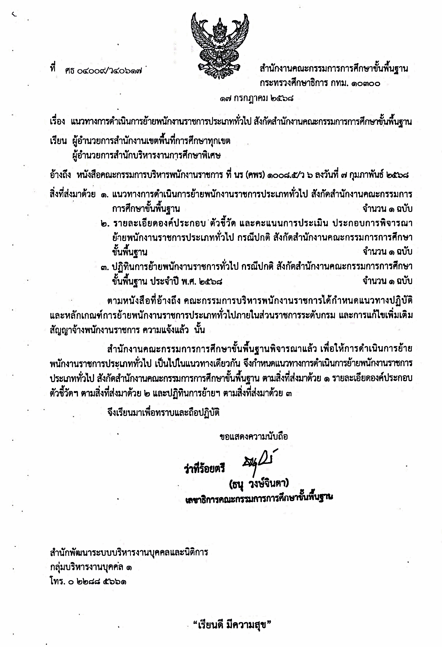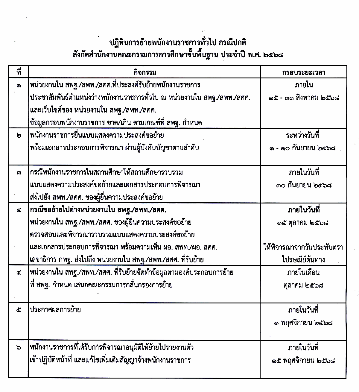 - ประกาศผลการย้าย: ภายใน 1 พฤศจิกายน 2568