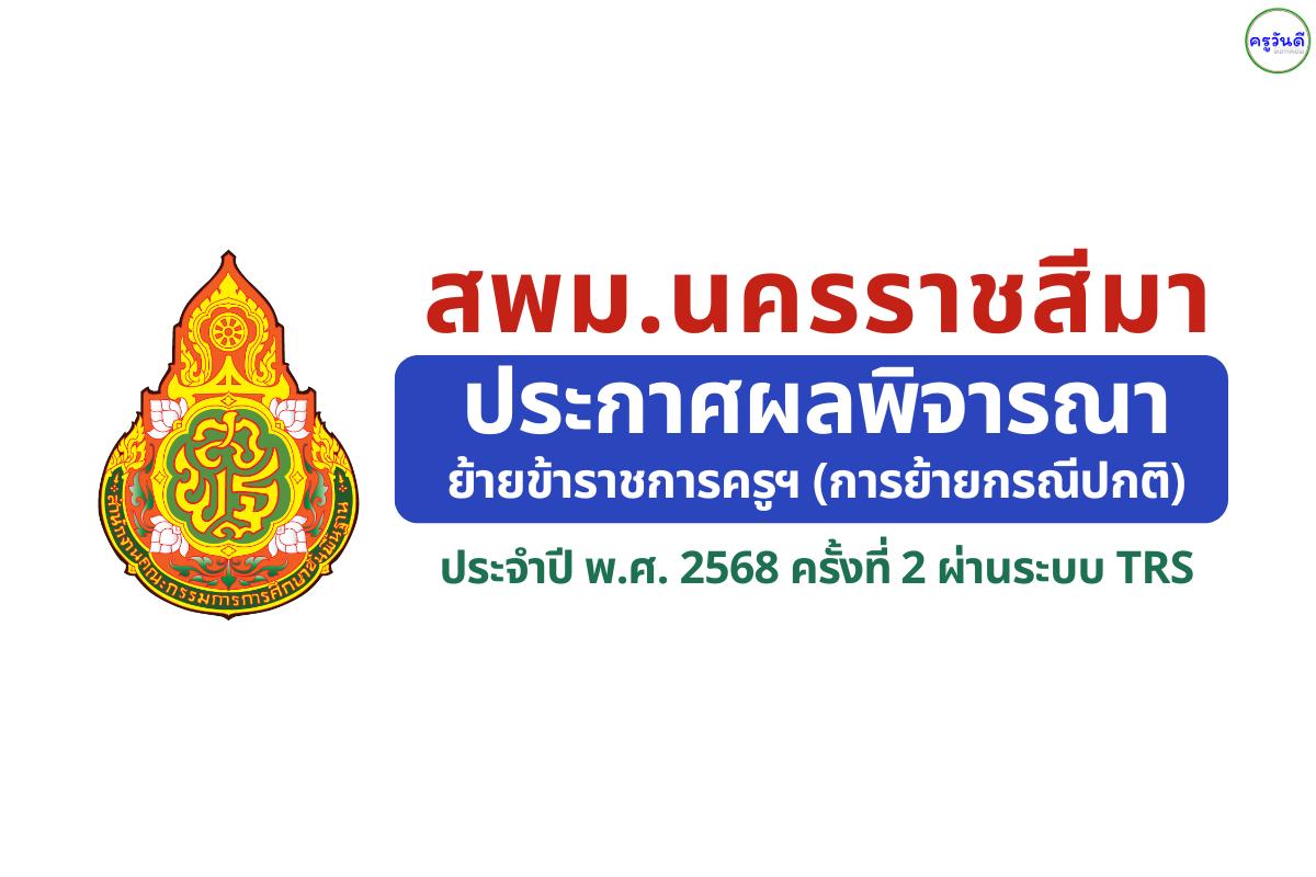 สพม.นครราชสีมา ประกาศผลพิจารณาย้ายครู ครั้งที่ 2 ปี พ.ศ. 2568