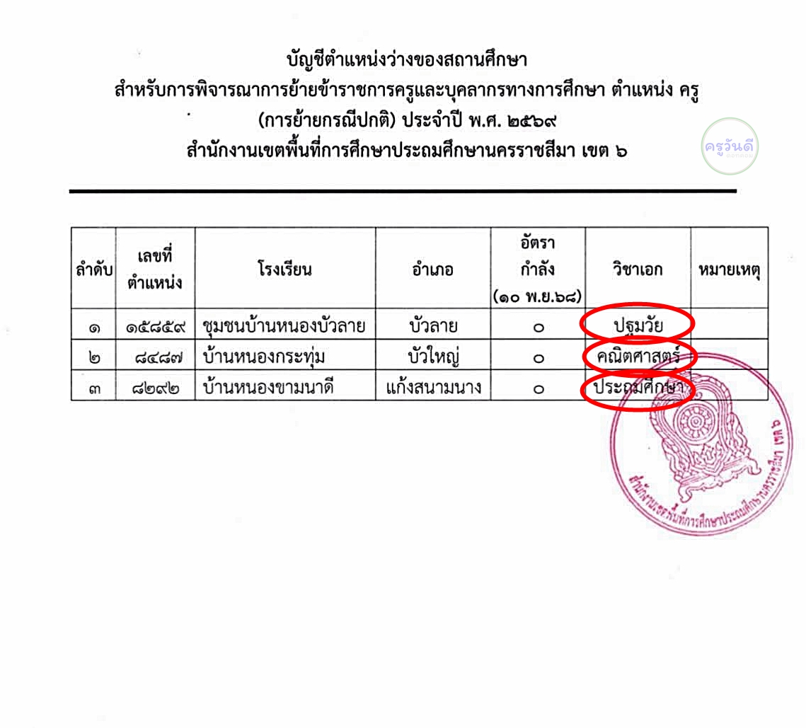 15 ม.ค. 2569สารวันครู 2569 ศ.นฤมล ภิญโญสินวัฒน์ รมว.ศธ. ยกย่องครูผู้เสียสละ สร้างคนดีคนเก่งสู่สังคม 14 ม.ค. 2569ปักหมุด! ตำแหน่งว่างย้ายครู 2569 จังหวัดนครราชสีมา (ทุกเขตพื้นที่ฯ) 14 ม.ค. 2569นะคะ หรือ นะค่ะ? สรุปวิธีเขียนที่ถูกต้องและเทคนิคการจำแม่นสไตล์ครูวันดี 14 ม.ค. 2569คุรุสภาเปิดลงทะเบียน "วันครูออนไลน์ 2569" อบรมฟรี 7 หลักสูตร รับเกียรติบัตรจากคุรุสภา 14 ม.ค. 2569สพป.นนทบุรี เขต 1 เรียกบรรจุครูผู้ช่วย 8 อัตรา (ขอใช้บัญชีข้ามเขต) รายงานตัว 23 ม.ค.69 14 ม.ค. 2569สพป.ชัยภูมิ เขต 2 รับสมัครพนักงานราชการครู 2 อัตรา (วิทย์-อังกฤษ) เงินเดือน 21,780 บาท สมัคร 26-30 ม.ค.69 14 ม.ค. 2569สพป.หนองบัวลำภู เขต 2 รับสมัครนักทรัพยากรบุคคล (ทุกสาขา) เงินเดือน 21,780 บาท สมัคร 13-19 ม.ค.69 14 ม.ค. 2569ปักหมุด! ตำแหน่งว่างย้ายครู 2569 จังหวัดสระแก้ว (ครบทุกเขต) 14 ม.ค. 2569ด่วน! เปิดรับสมัครสอบ ก.พ. 2569 (Paper & Pencil) แล้ววันนี้ ทางเว็บไซต์ job3.ocsc.go.th เช็กศูนย์สอบและสมัครได้เลย 13 ม.ค. 2569ปักหมุด! ตำแหน่งว่างย้ายครู 2569 จังหวัดนครพนม (ทุกเขตพื้นที่ฯ)