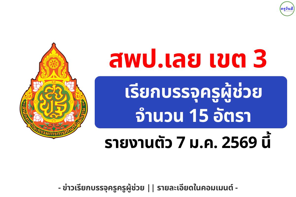 สำนักงานเขตพื้นที่การศึกษาประถมศึกษาเลย เขต 3 (สพป.เลย เขต 3) ประกาศเรียกผู้สอบแข่งขันได้มารายงานตัวเพื่อบรรจุและแต่งตั้งเข้ารับราชการเป็นข้าราชการครู ตำแหน่งครูผู้ช่วย รอบนี้เรียกครอบคลุมทั้งบัญชีปี 2567 และ 2568 รวมทั้งหมด 15 อัตรา มีรายละเอียดดังนี้ครับ