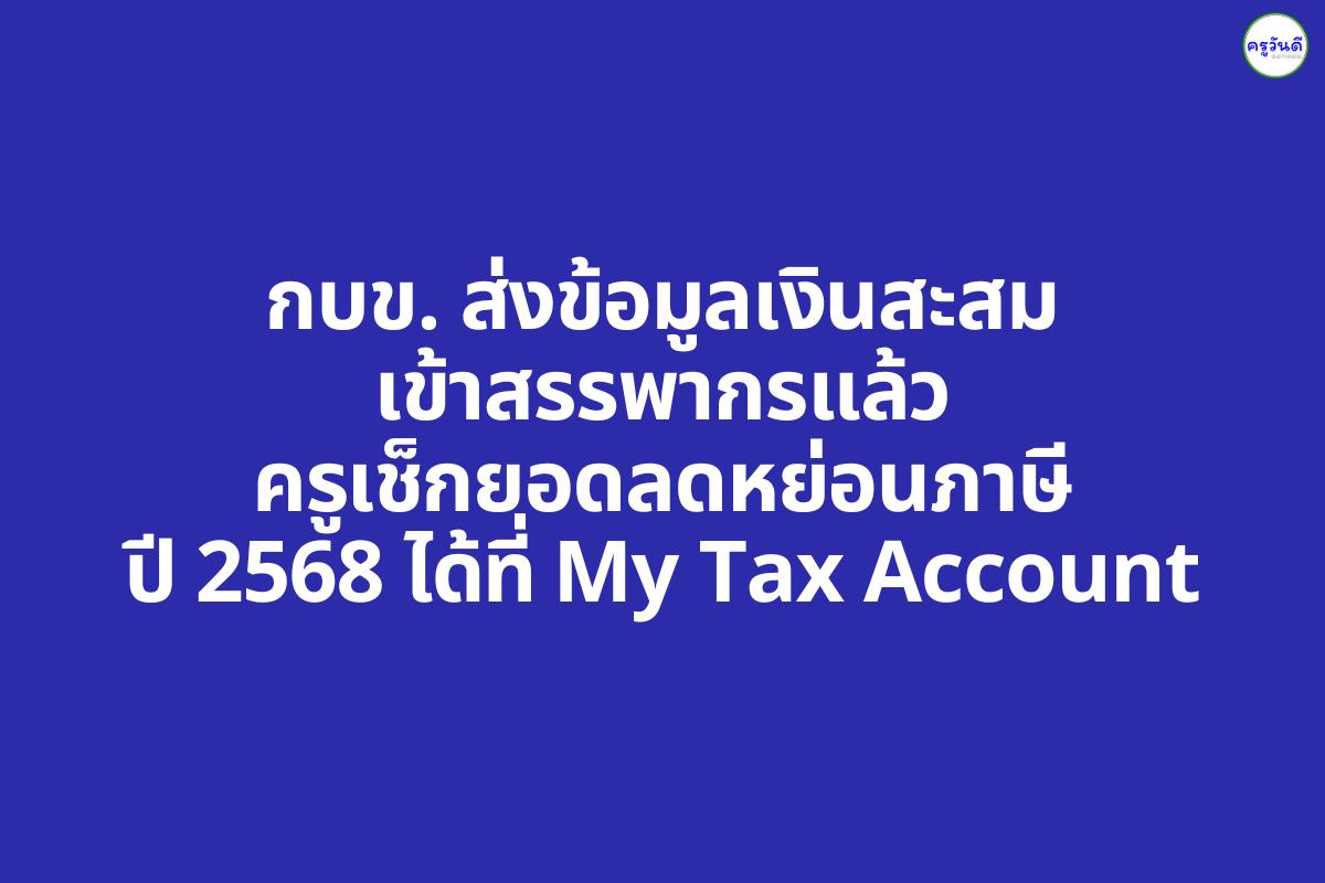 สมาชิก กบข. สามารถตรวจสอบยอดเงินสะสมเพื่อใช้สิทธิลดหย่อนภาษีได้โดยตรงผ่านระบบ My Tax Account (D-MyTax) ของกรมสรรพากร ซึ่งจะช่วยลดขั้นตอนในการขอหนังสือรับรองและการกรอกข้อมูลด้วยตนเอง ทำให้การยื่นภาษีออนไลน์สะดวกและรวดเร็วยิ่งขึ้นครับ