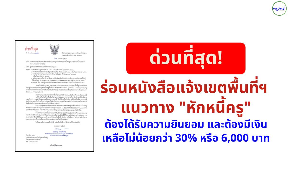 - 1. หลักความสมัครใจ (สำคัญมาก): การหักเงินเดือนหรือบำนาญเพื่อชำระหนี้ ต้องทำบนหลักการ "ความสมัครใจและความยินยอมเป็นรายกรณี" โดยครูต้องแจ้งความประสงค์ว่าต้องการให้หักเท่าไหร่ และต้องมีหลักฐานความยินยอมเป็นหนังสือชัดเจน