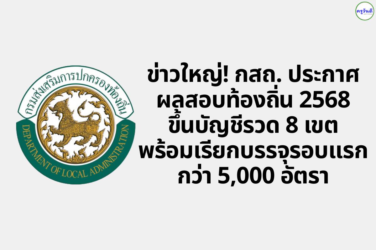ข่าวใหญ่ กสถ. ประกาศผลสอบท้องถิ่น 2568 ขึ้นบัญชีรวด 8 เขต พร้อมเรียกบรรจุรอบแรกกว่า 5,000 อัตรา