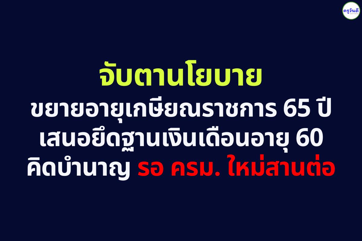 จับตานโยบายขยายอายุเกษียณราชการ 65 ปี เสนอยึดฐานเงินเดือนอายุ 60 คิดบำนาญ รอ ครม. ใหม่สานต่อ