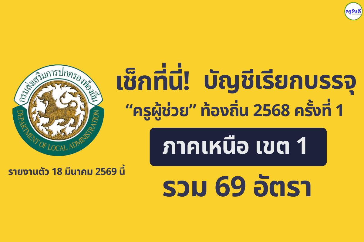 เช็กด่วน! บัญชีเรียกบรรจุครูผู้ช่วยท้องถิ่น 2568 ครั้งที่ 1 (ภาคเหนือ เขต 1) รวม 69 อัตรา