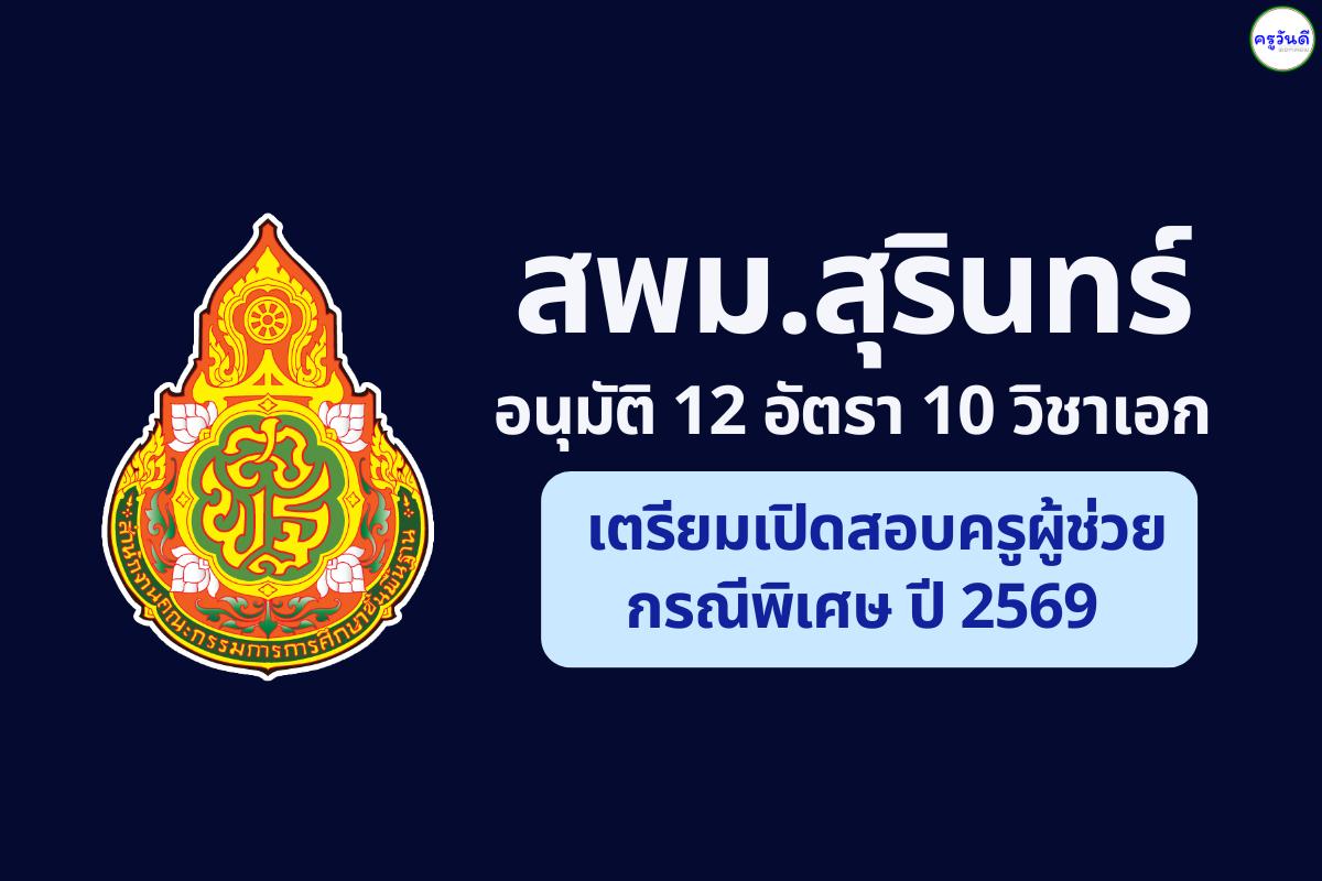 ข่าวดี! สพม.สุรินทร์ อนุมัติ 12 อัตรา 10 วิชาเอก เตรียมเปิดสอบครูผู้ช่วย กรณีพิเศษ ปี 2569