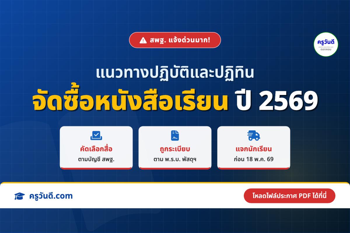 สพฐ. แจ้งด่วนมาก !!! แนวทางปฏิบัติในการจัดซื้อหนังสือเรียน ปีงบประมาณ พ.ศ. 2569