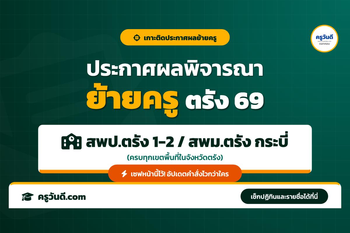 เกาะติด! ประกาศผลพิจารณาย้ายครู 2569 จังหวัดตรัง (สพป.ตรัง 1-2 / สพม.ตรัง กระบี่)