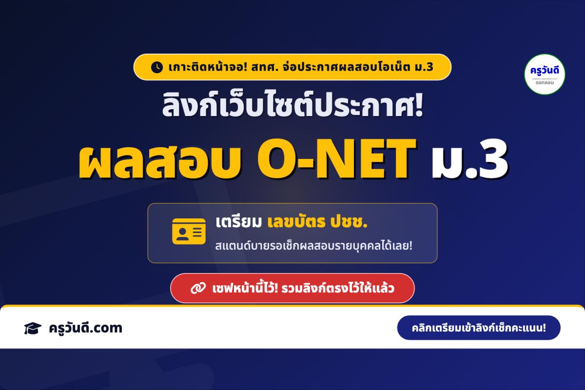 สวัสดีครับน้อง ๆ ม.3 ผู้ปกครอง และคุณครูทุกท่าน! คืนนี้เตรียมตัวนอนดึกกันนิดนึงนะครับ เพราะ แอดมินครูวันดี กำลังเกาะติดหน้าเว็บไซต์ สถาบันทดสอบทางการศึกษาแห่งชาติ (สทศ.) อย่างใกล้ชิด เพื่อรอลุ้นการประกาศผลสอบโอเน็ต (O-NET) ระดับชั้นมัธยมศึกษาปีที่ 3 ประจำปีการศึกษา 2568 (สอบเมื่อต้นปี 2569) คาดว่าระบบอาจจะเปิดให้เช็กคะแนนรายบุคคลได้ในช่วงกลางดึกคืนนี้เลยครับ แอดมินจึงรวบรวมลิงก์ทางเข้าทั้งหมดมาให้สแตนด์บายรอไว้แล้วครับ!