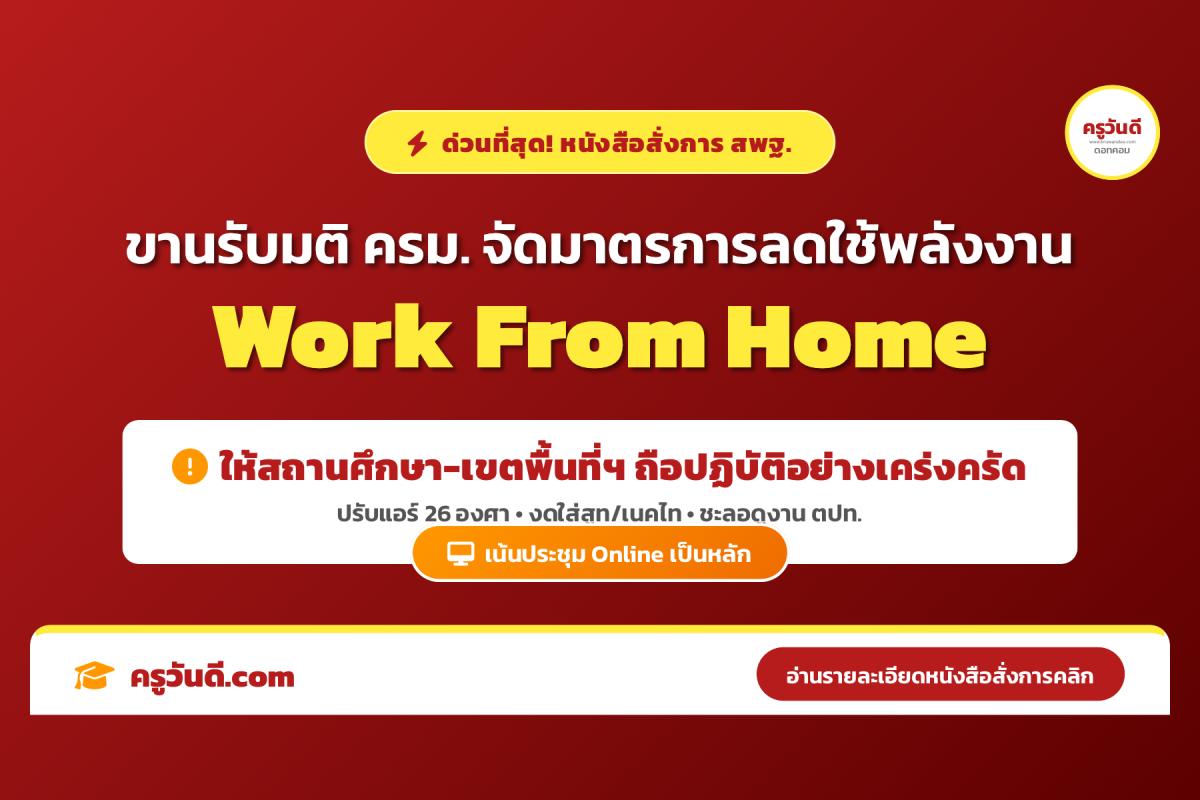 สพฐ. แจ้งด่วน! ขอความร่วมมือสถานศึกษาและเขตพื้นที่ฯ จัดมาตรการ Work from Home ลดใช้พลังงานรับวิกฤต