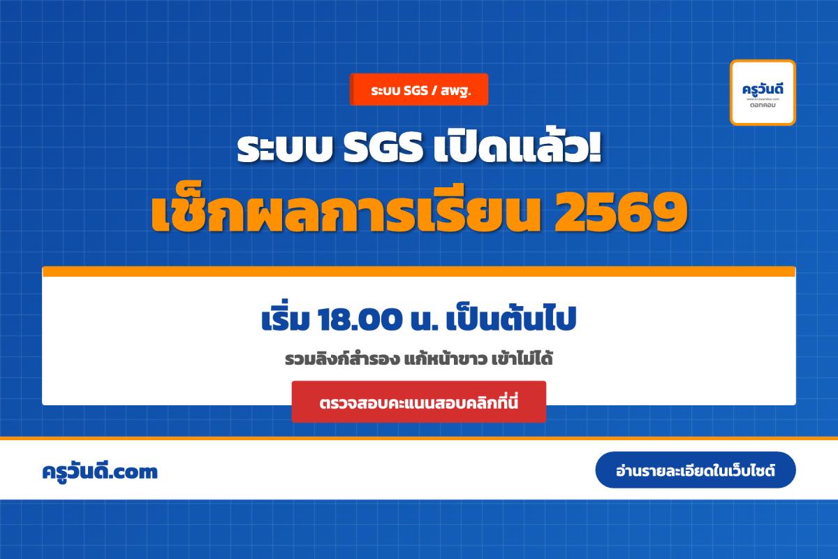 ข่าวอัปเดตด่วน: สิ้นสุดการรอคอยของน้องๆ นักเรียนทั่วประเทศ! ขณะนี้ระบบ SGS (Secondary Grading System) ได้เปิดระบบให้นักเรียนและผู้ปกครองสามารถเข้าตรวจสอบผลการเรียนประจำภาคเรียนได้แล้ว โดยเริ่มเปิดระบบตั้งแต่เวลา 18.00 น. ของวันนี้เป็นต้นไปครับ