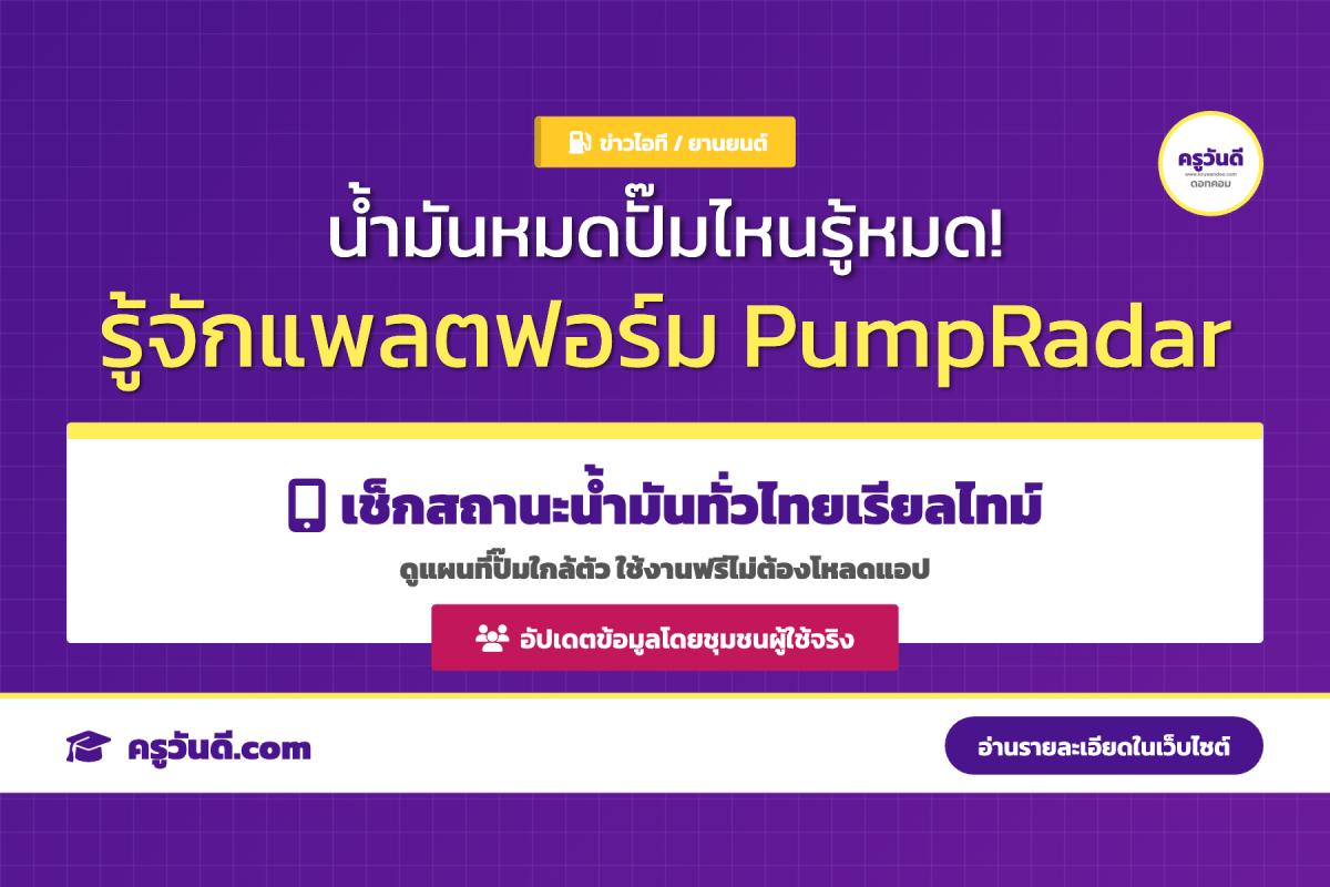 สรุปข่าวไอทีและยานยนต์: ขอแนะนำแพลตฟอร์มใหม่ PumpRadar เว็บไซต์รายงานสถานะปั๊มน้ำมันทั่วประเทศไทยแบบเรียลไทม์ ช่วยให้ผู้ใช้รถสามารถเช็กได้ว่าปั๊มใกล้ตัวมีหรือไม่มีน้ำมันชนิดใดบ้าง พร้อมเปิดพื้นที่ให้ชุมชนช่วยกันรายงานสถานะอัปเดตข้อมูลให้เป็นปัจจุบันที่สุดครับ