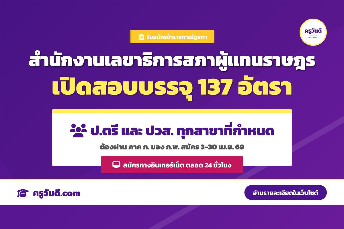 สำนักงานเลขาธิการสภาผู้แทนราษฎร เปิดสอบบรรจุข้าราชการ 137 อัตรา วุฒิ ปวส.-ป.ตรี (รับสมัคร 3-30 เม.ย. 69)