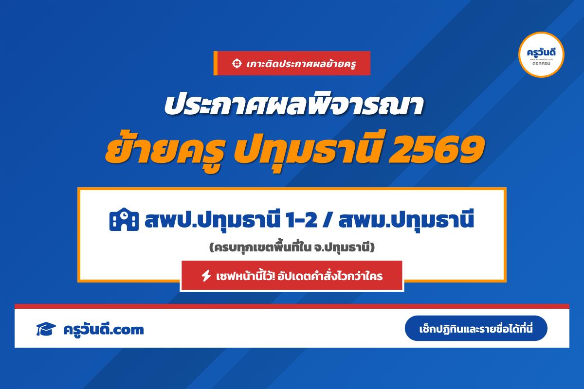 เกาะติด ประกาศผลพิจารณาย้ายครู 2569 จังหวัดปทุมธานี (สพป.ปทุมธานี 1-2 / สพม.ปทุมธานี)
