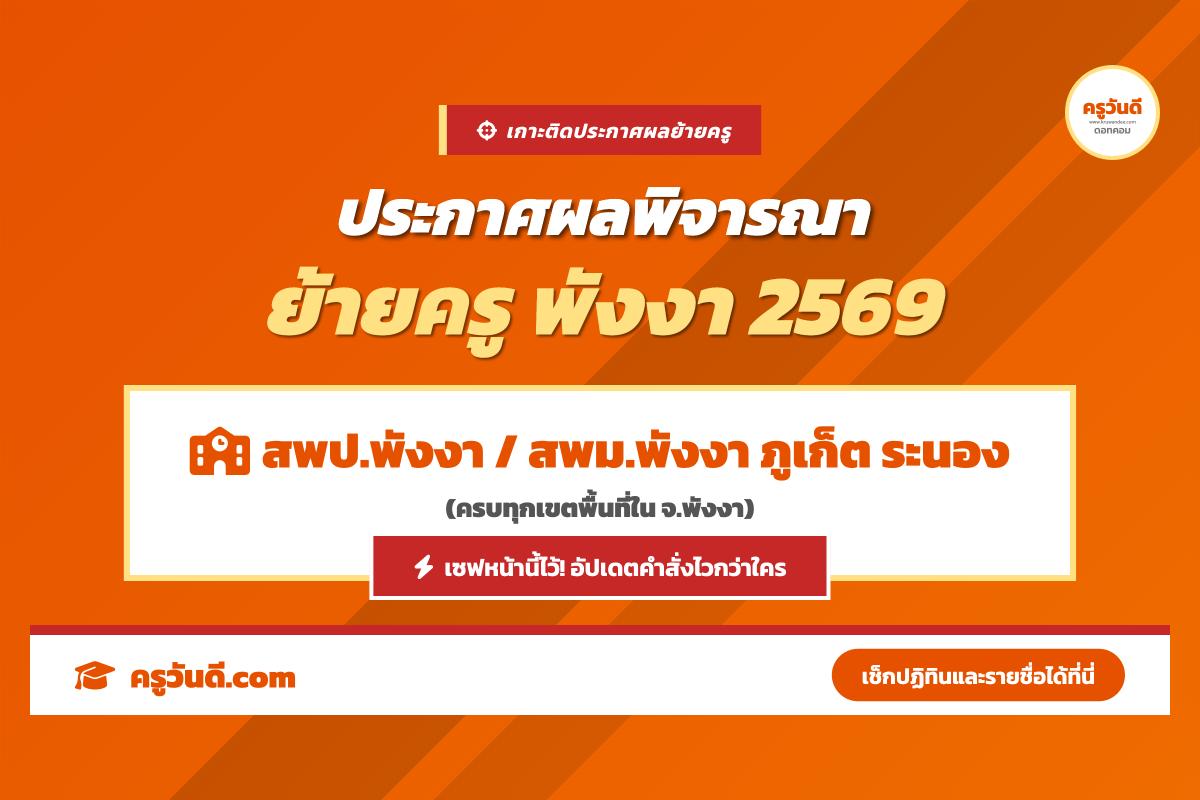 เกาะติด ประกาศผลพิจารณาย้ายครู 2569 จังหวัดพังงา (สพป.พังงา / สพม.พังงา ภูเก็ต ระนอง)