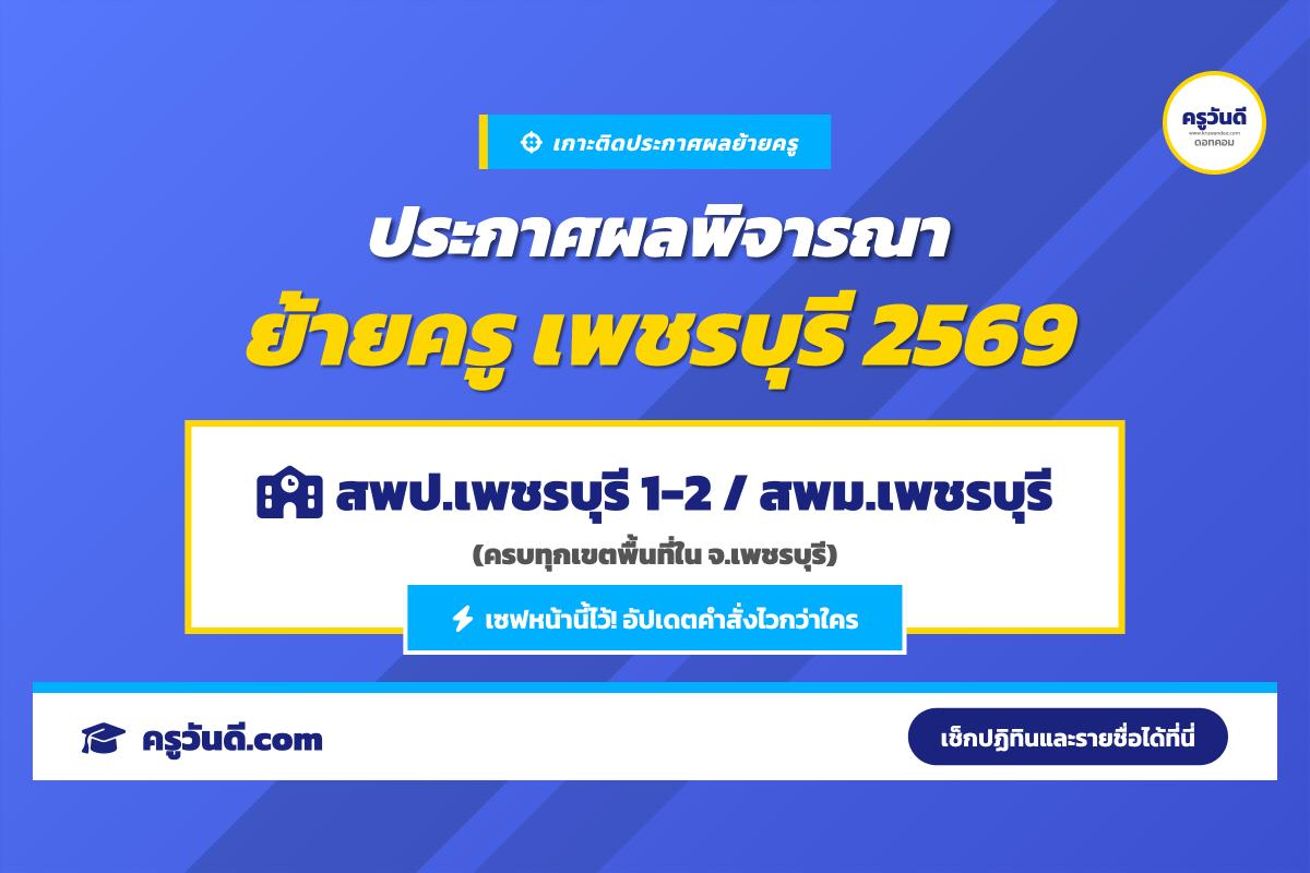 เกาะติด! ประกาศผลพิจารณาย้ายครู 2569 จังหวัดเพชรบุรี (สพป.เพชรบุรี 1-2 / สพม.เพชรบุรี)